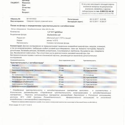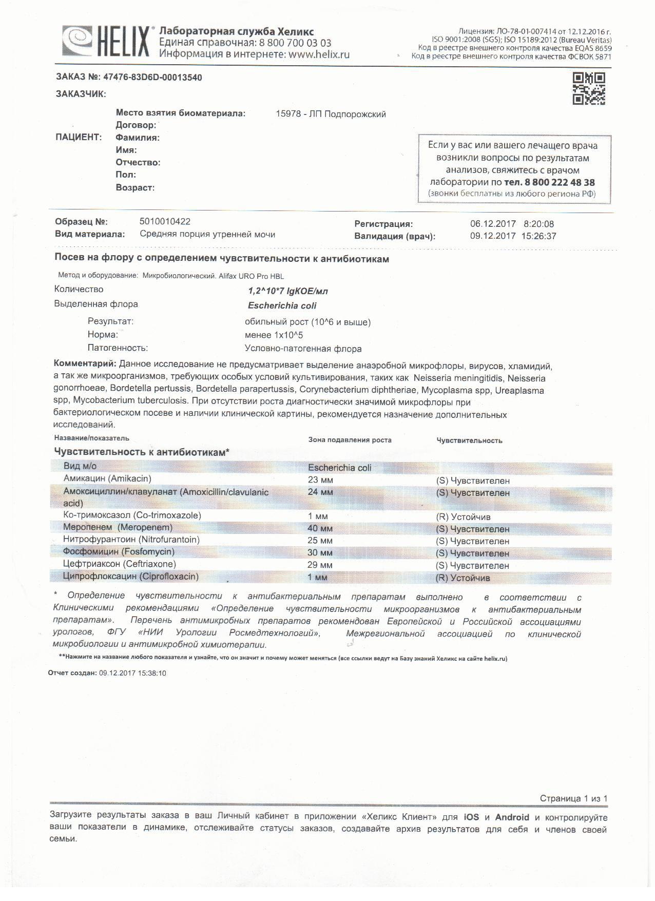 С 2013г обострения пиелонефрита до 3-4-х раз в год, циститы. Принимала антибиотики с кратковременным положительным эффектом. Основная высев. флора – E.coli.