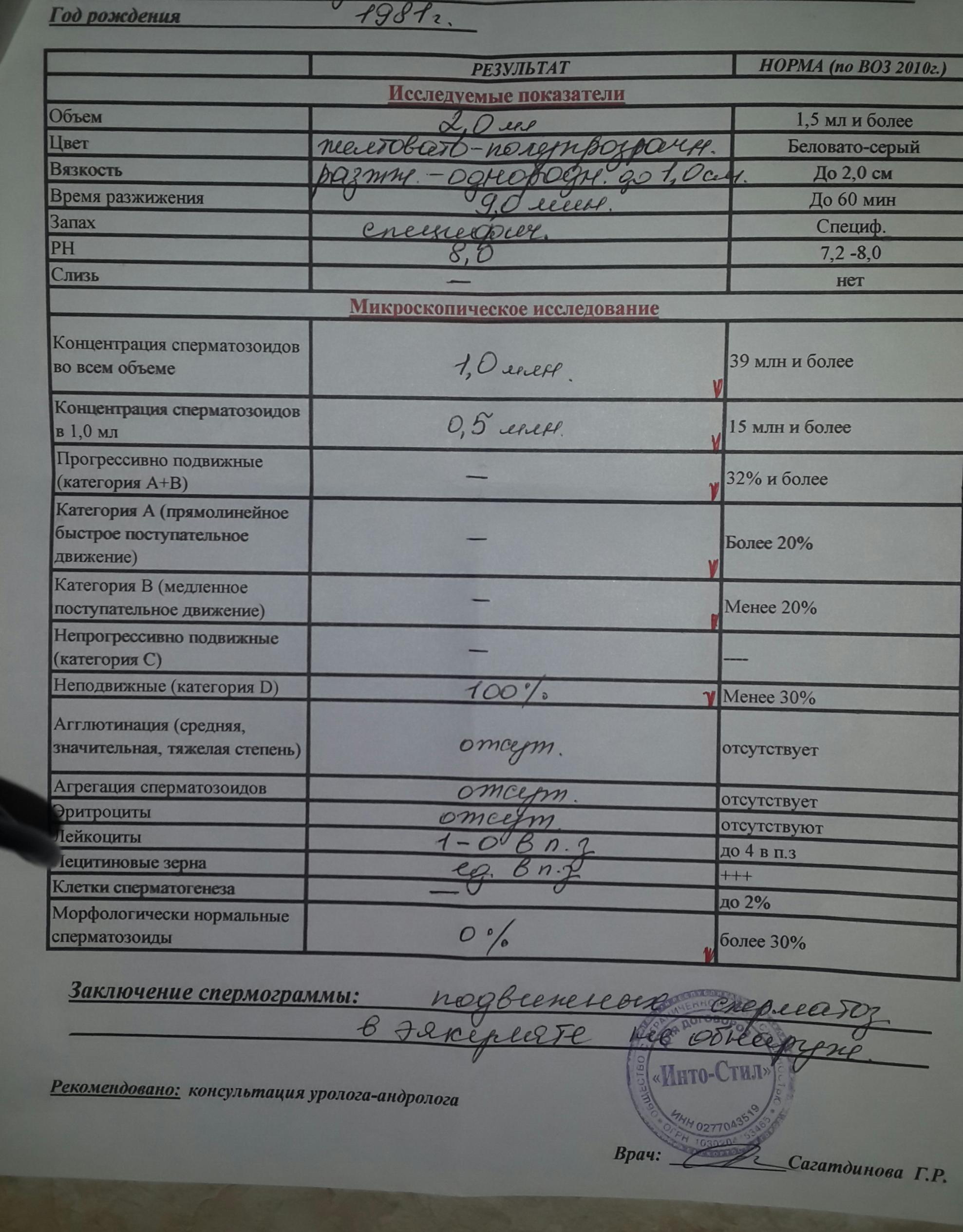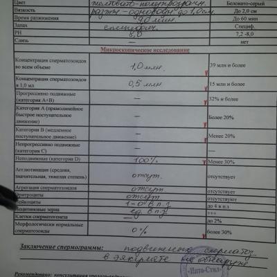 Здравствуйте, у меня просьба, помогите разобраться. Мужу поставили азооспермию пару лет назад. Сейчас снова сдали анализы, Вам отправила фото с данными. Вроде сейчас есть сперматозоиды но не подвижные так? Может посоветуете что-нибудь. Спасибо заранее.