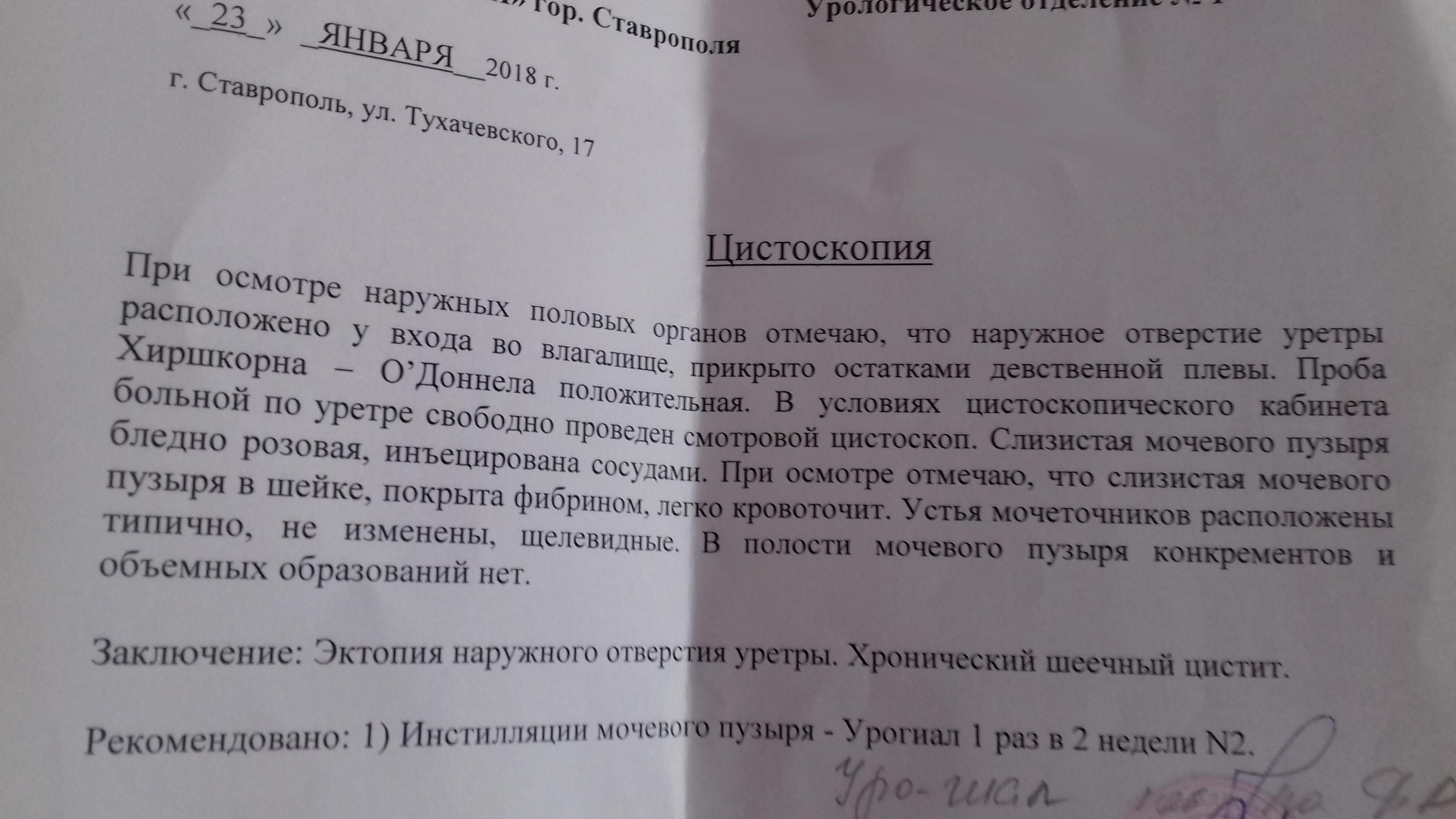 Ситуация не ясна. Зачем делали цистоскопию при пиелонефрите.