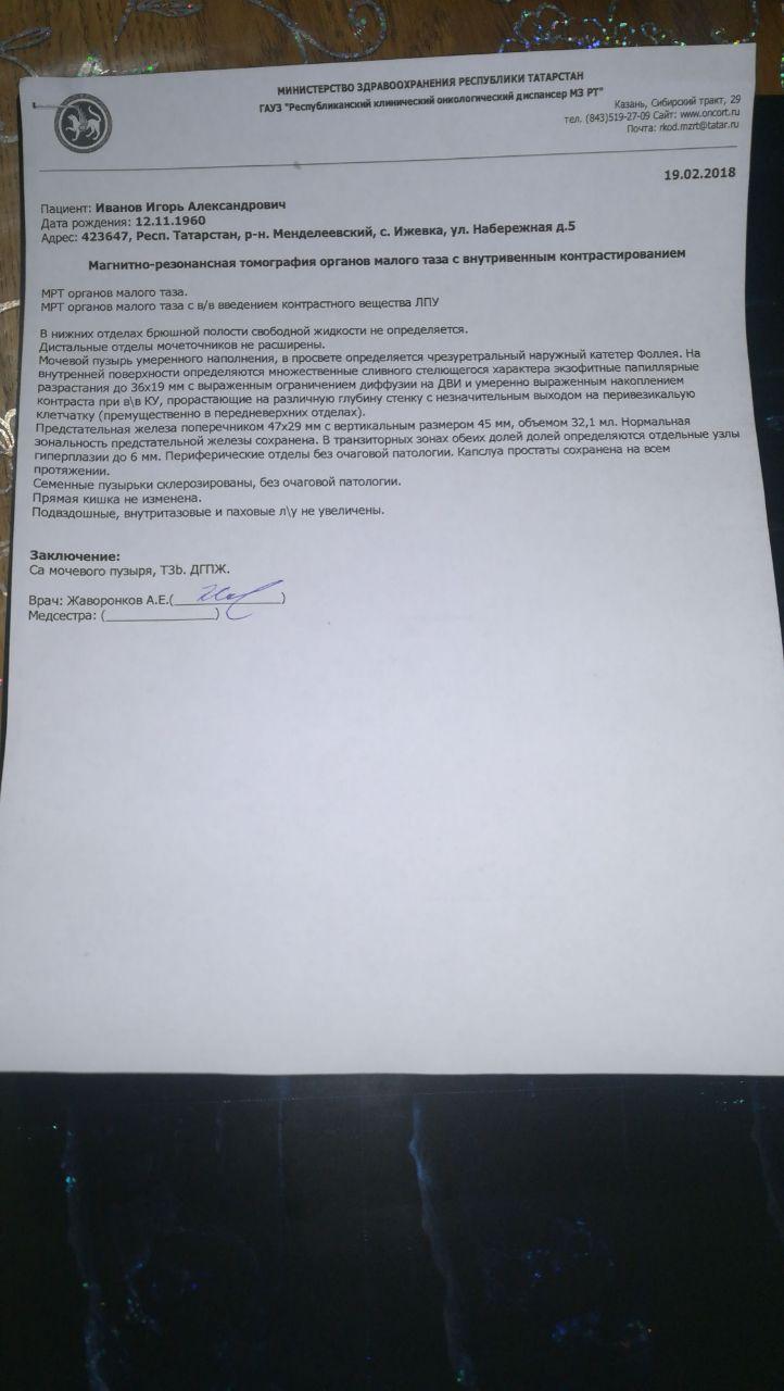 Здравствуйте, у отца 57 лет выявили полипы в мочевом пузыре удалили лазером , полипы отправили на гистологию, результат положительный рак 3 степени , сегодня прошёл мрт не может расшифровать , назначили операцию через месяц , помогите пожалуйста с расшифровкой, месяц просто кажется очень большой срок , может нужно срочно и в Германию например ? Никто ничего толком не может объяснить. Спасибо за ответ