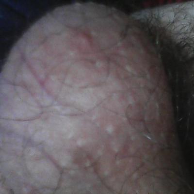 здравствуйте вскочил прыщ на яичках, и появилось коричневое пятно незнаю что делать .