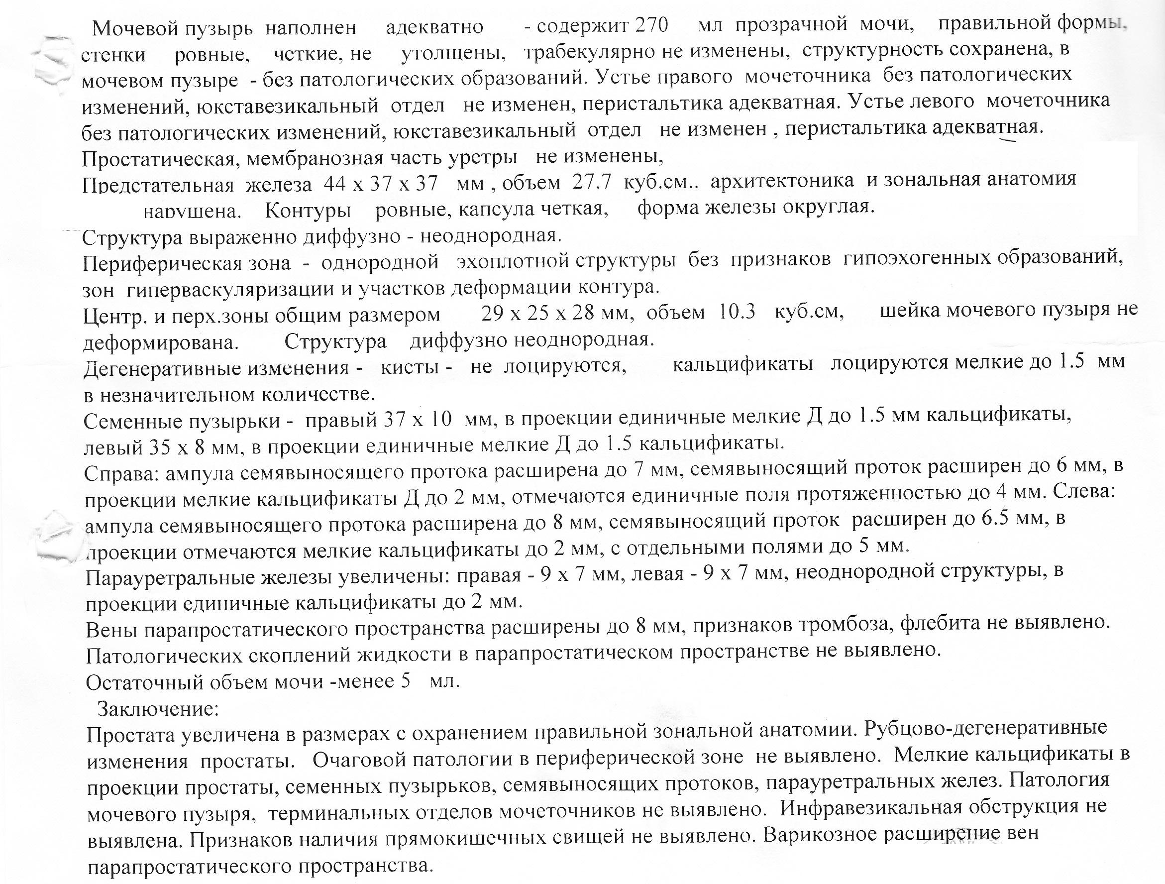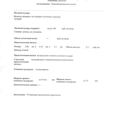 Заметил, что отсутствует эрекция по утрам + отсутствует эрекция при виде голой женщины (при сексе эрекция была и есть), это стало поводом понаблюдать за здоровьем и я решил пойти к урологу на консультацию, доктор сделал узи - его подозрения были-хронический простатит, предложил сдать анализы и через неделю, когда я пришел за анализами, то врач сказал, что у меня бактериальный хронический простатит и предложил лечение, которое стоит почти 20 т.р.. У меня есть сомнения по поводу диагноза, прикладываю анализы и узи