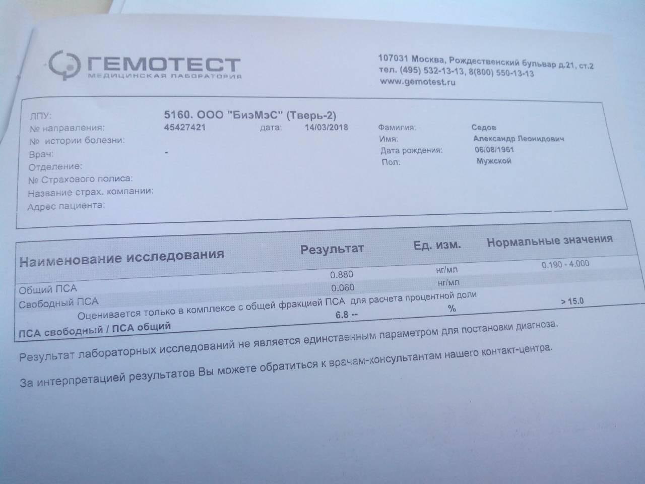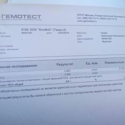 Здравствуйте доктор.Мужчине 57лет.Два месяца получает лечение по поводу воспаления простаты.Результаты последнего исследования ПСА следующие:Общий ПСА 0.880 Свободный ПСА 0,060.ПСАсвободный/ПСАобщий 6.8%.Двумя месяцами раньше были следующие показатели:ПСАобщий7.87 ПСАсвободный0.193.ПСА общий/ПСАсвободный2.5.Скажите пожалуйста ,это плохой результат?Интересует именно последний результат с соотношением 6.8%это ведь плохо?Принимает Дуодарт два месяца.Заранее благодарю.