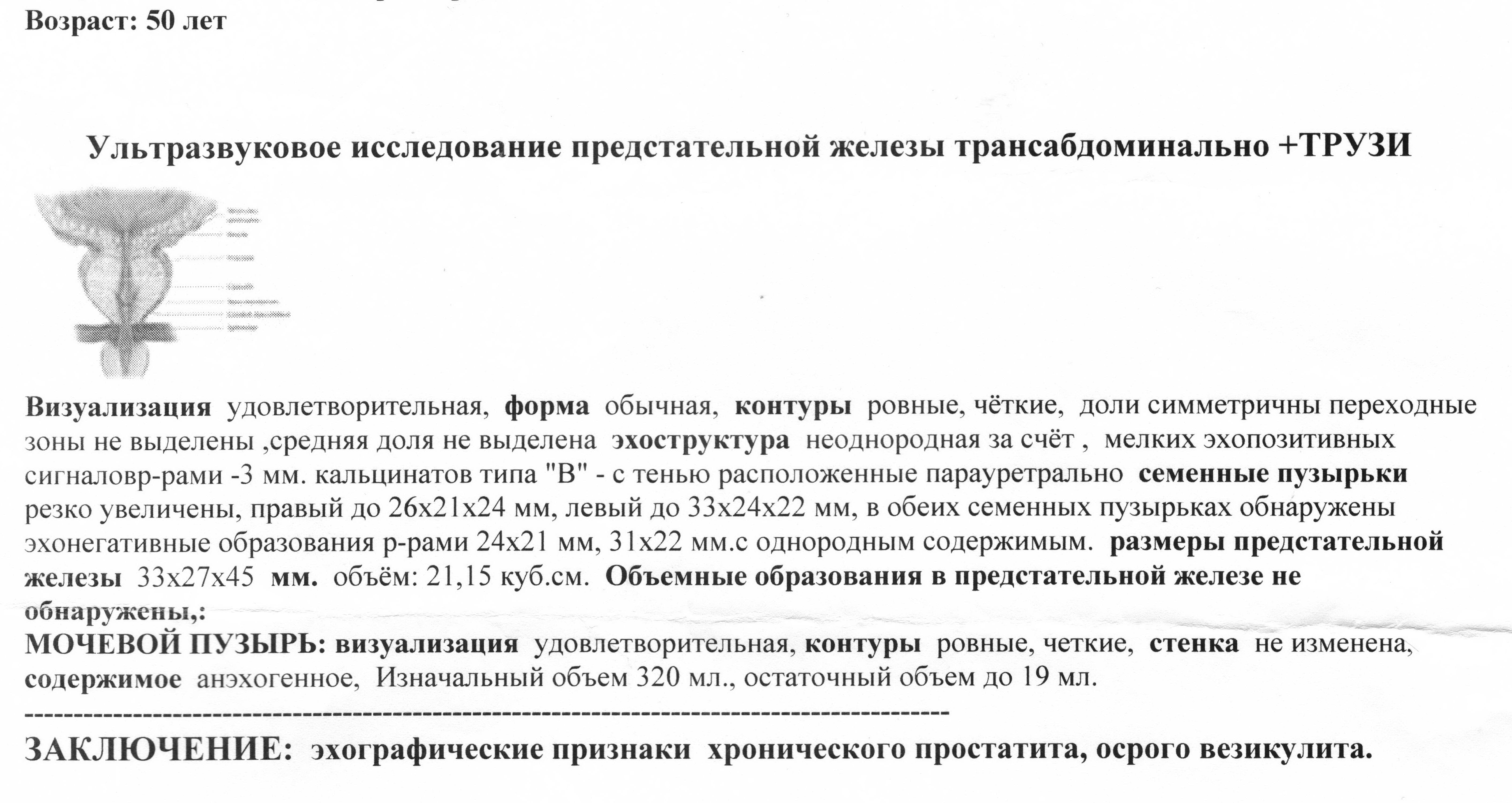В феврале 2016 года сделал УЗИ простаты трансректально. После проведения соответственного лечения наступили ремиссия. Но в конце 2017г. после приступа почечной колики, проведено соответственное лечение. В обеих почкахна УЗИ были обнаружены камни 2, 3, 4 мм. камни. Пропил чай Шеншитонг. В почке одной остался один камень 3мм. в другой 4 мм.Но появились признаки эпидидимита. Сейчас проводится соответственное лечение. Что такое эхонегативные образования семенных пузырьков с однородным содержимым. Это кисты на эхограммах. Ваше мнение .