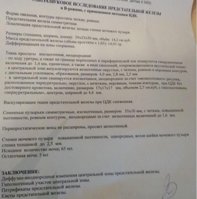диффузно-неоднородные изменения центральной зоны простаты
