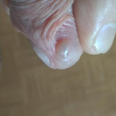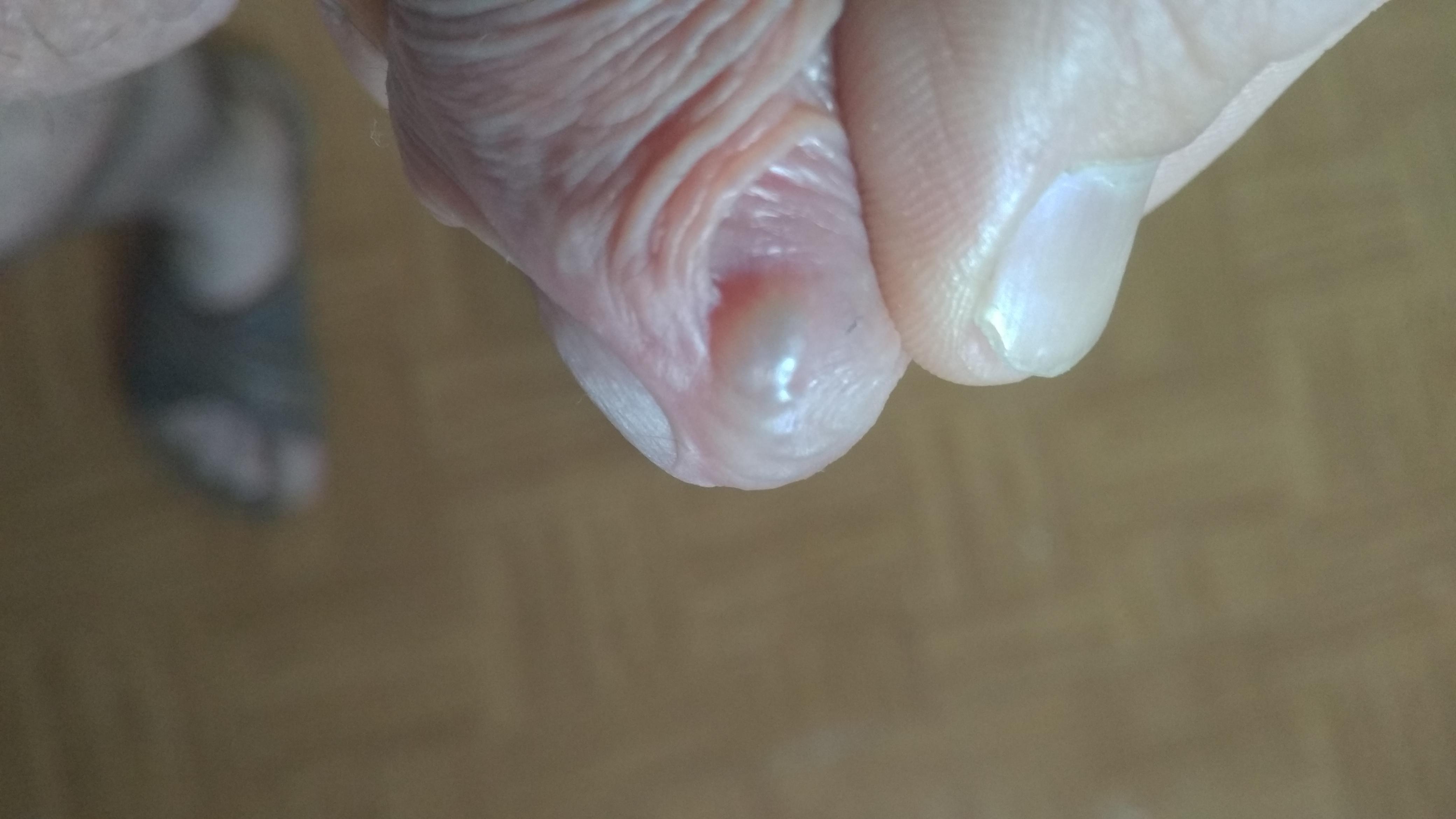 Здравствуйте. волнует появление водяного пузыря в области уздечки, и два маленького пузыря отходят от него. (фото) зуда нет, боли при мочеиспускании тоже, нету воспаления.