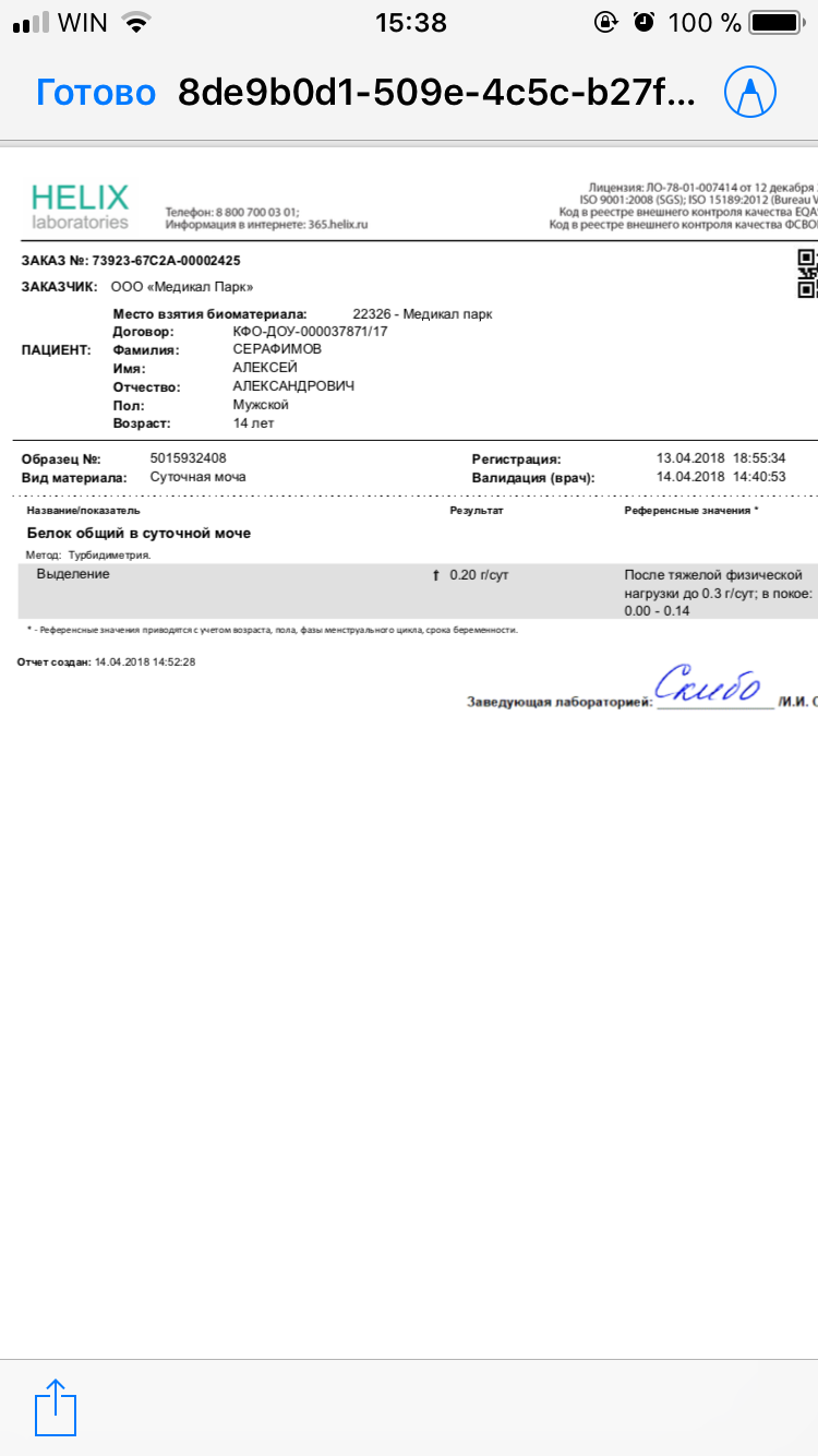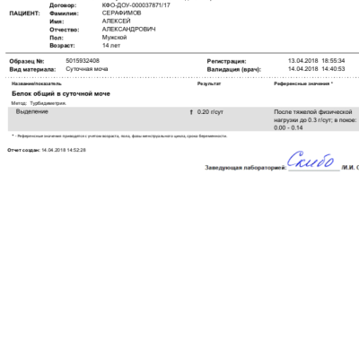 Здравствуйте.Я мама .Сыну 14 лет .Рост 1.86,вес 68кг.Ничего не беспокоит,занимается физнагрузки:гантели ,турник ,перекладина.На медосмотре в ОАМ выявлен белок.Результаты все прикреплю.Затем сдали утреннюю мочу ,не вставая с кровати,там белок менее0,1г.Также суточную -там белок 0,20 г/ сут.Скажите,пжл,стоит ли беспокоиться или же это можно считать ортостатической(неопасной)протеинурией.Что дальше обследовать.Узи делали давно,в июле,вот протокол.Жду Ваших рекомендаций .Благодарю Вас.