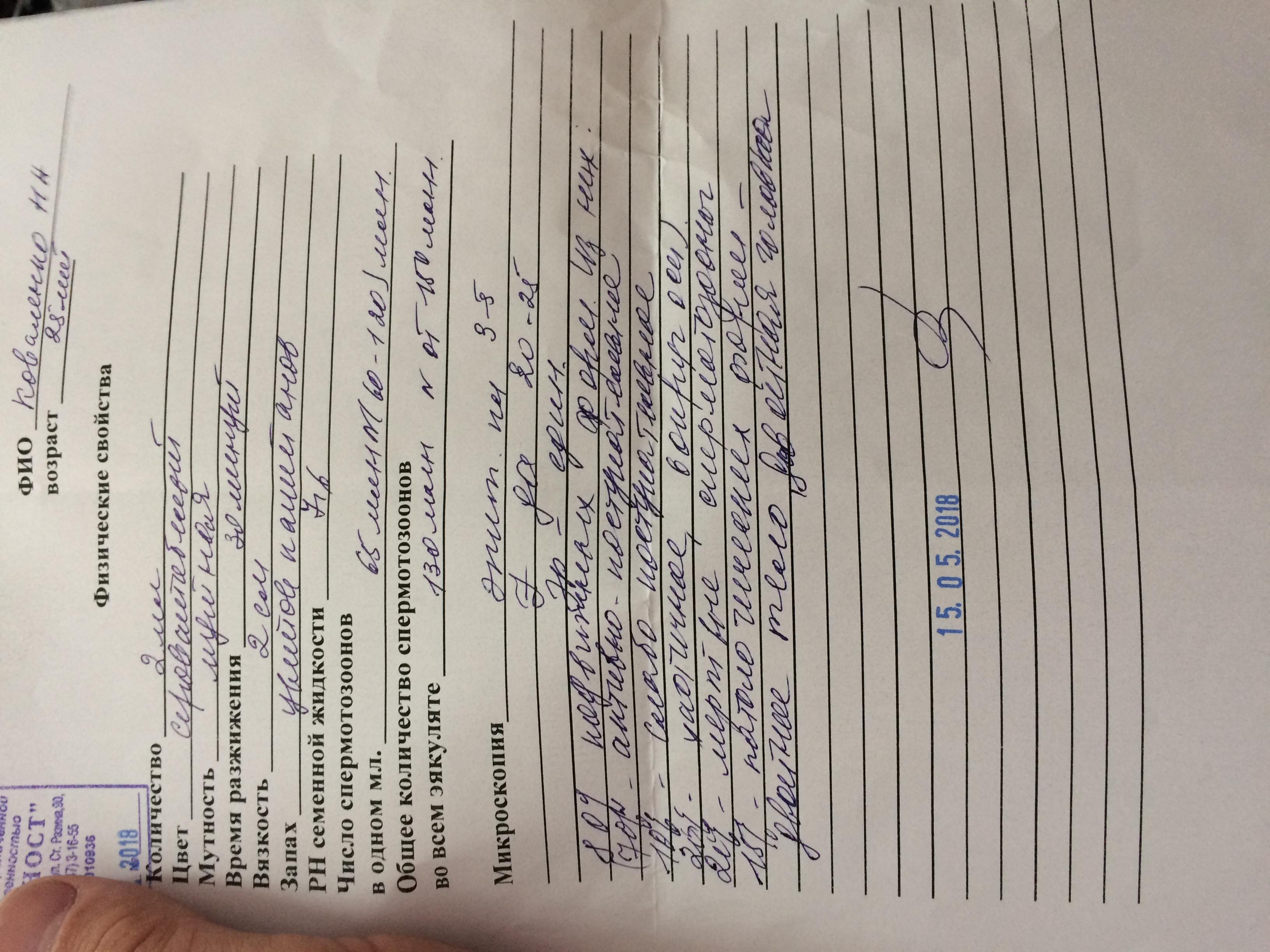 Добрый день ! Сдавал анализ спермограммы для себя ниразу не сдавал , вот хотелось узнать как моя сперма ! Никогда не был женат ! Что скажите !