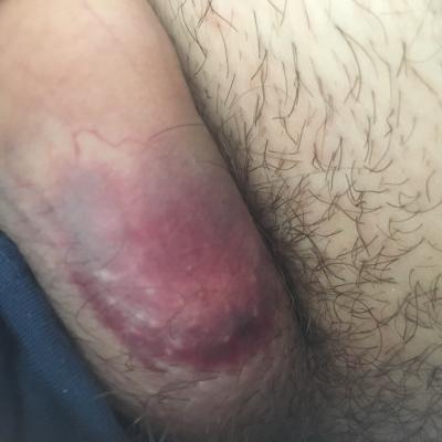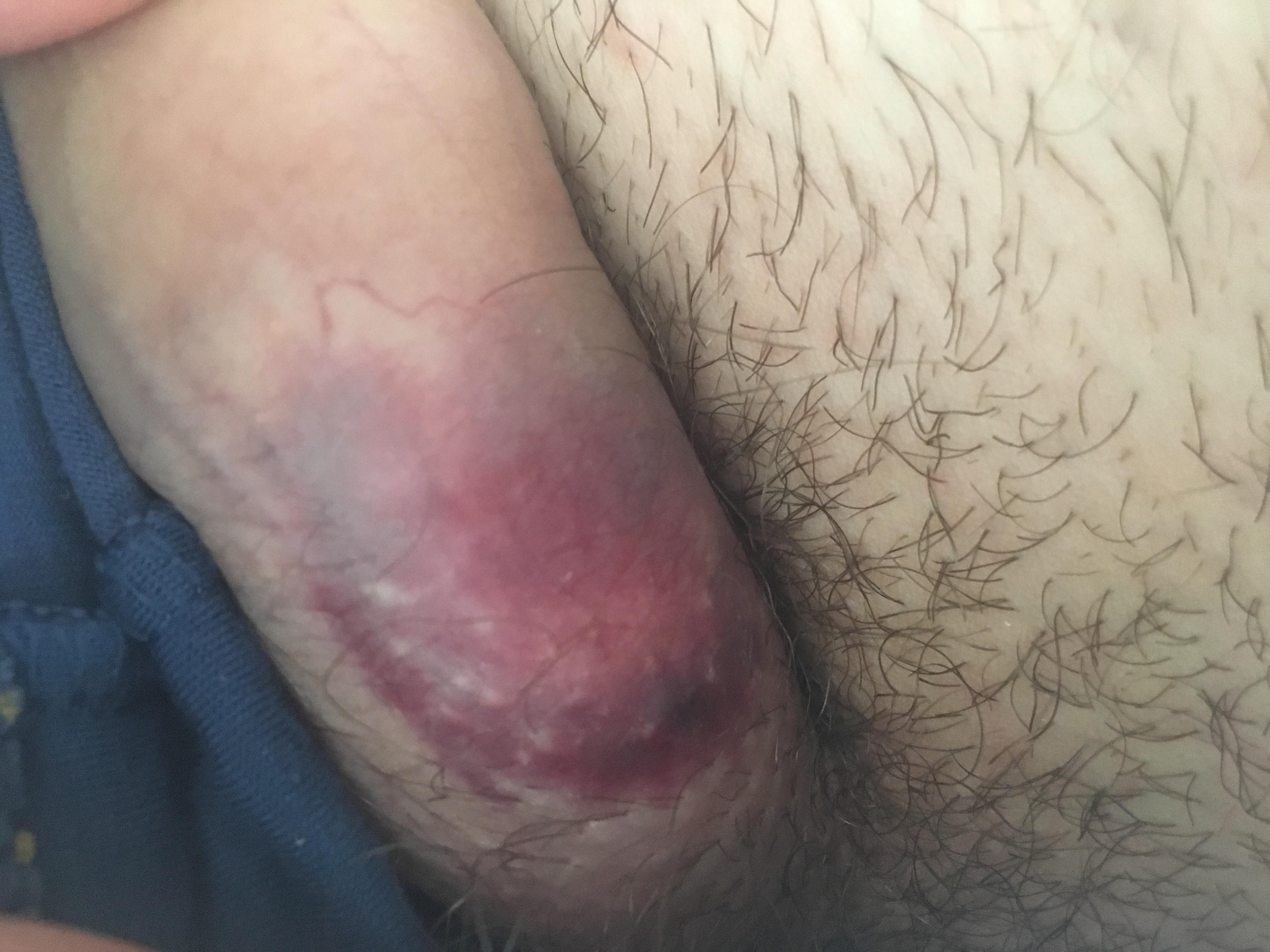 Здравствуйте, во время полового акта, девушка случайно поцарапала половой орган, и на утро заметил большой синяк!