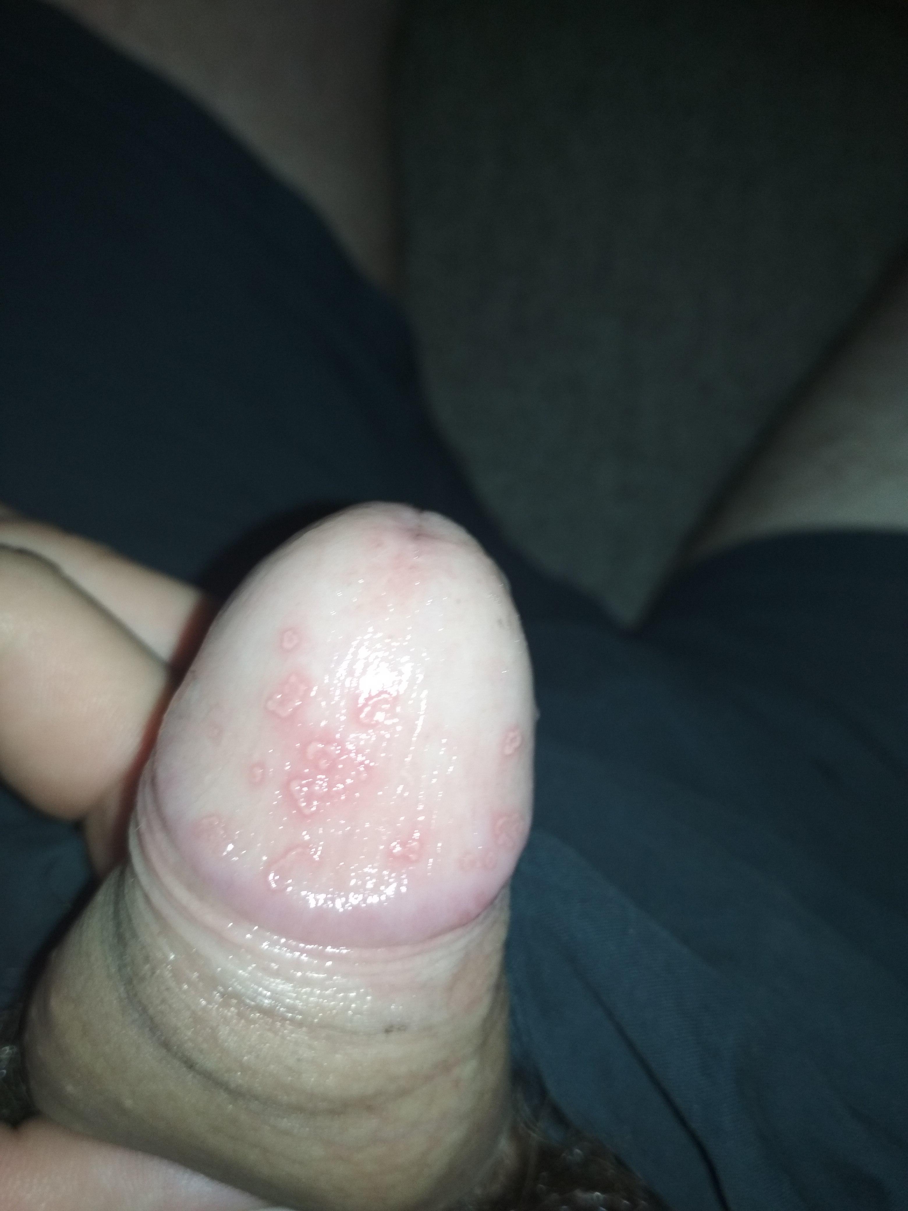 Добрый день на головке члена появились красные пятна,мажу Клотримазол но кажется что их стало больше