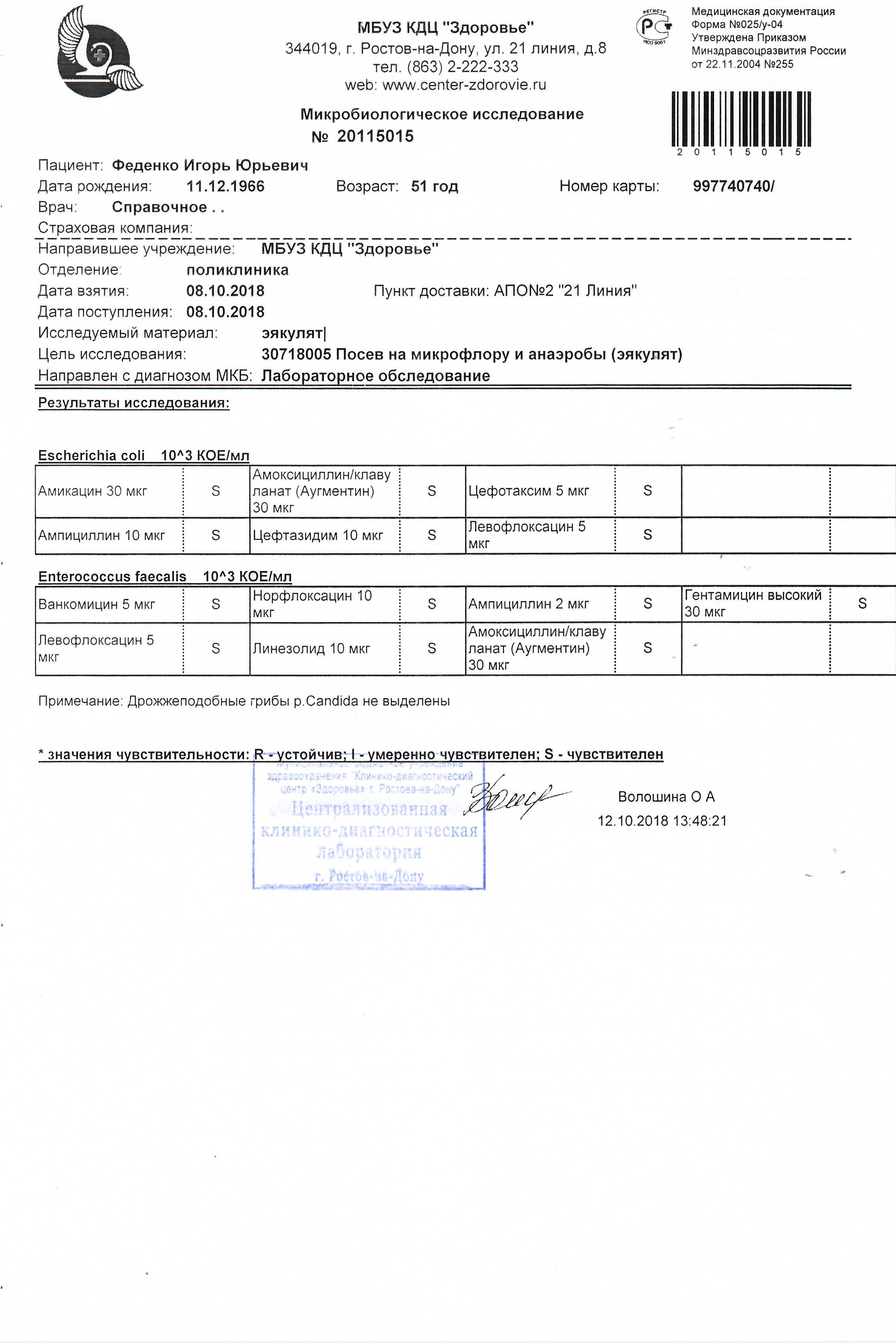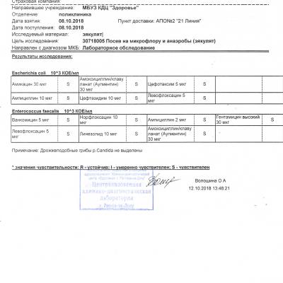 Игорь Аркадьевич,здравствуйте! У меня уже несколько лет ДГПЖ(увеличена средняя доля) и периодически(не реже 1 раза в год) появляются подобные бактерии.Вот и в очередной раз пару недель назад я почувствовал ухудшение СНМП.Симптомы появились практически сразу же, после кратковременных заплывов в море. Сразу же сделал анализ (в приложении).Какую схему лечения посоветуете?Данный вопрос размещен еще на прошлой неделе в NetHealth....но там до сих пор ничего нет, обратная связь не работает и указанный на сайте тел заблокирован....NetHealth работает?