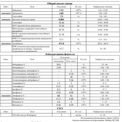 В пересданном ОАМ все показатели в пределах нормы (вложила).