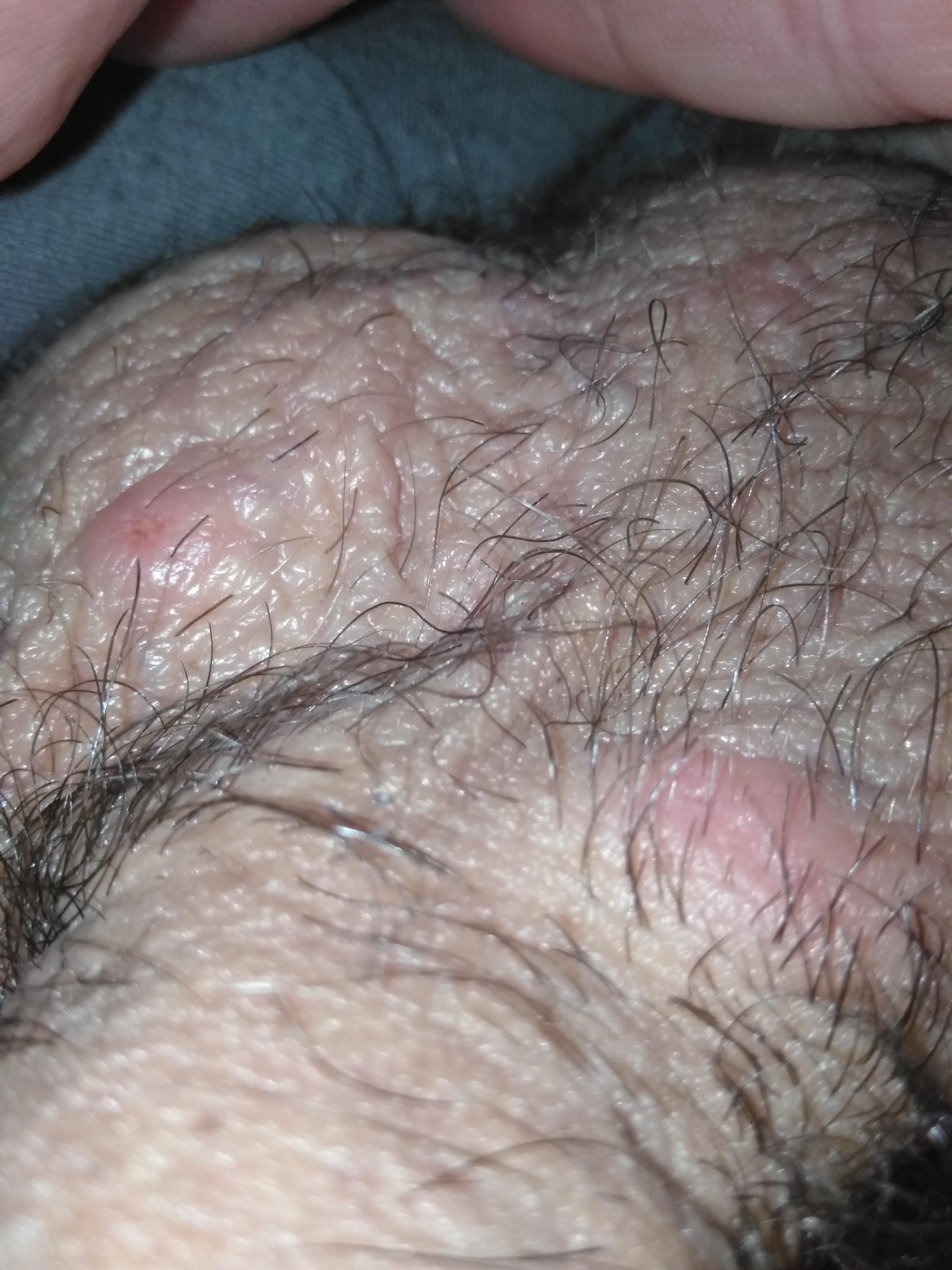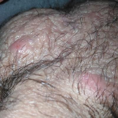 На машонке образовались два угря гноя нет пробывал на давить ни чего нет не болят если пробуеш на давить чешется под скажите что это..