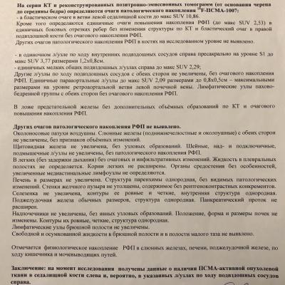 Добрый вечер! В декабре 17 года была сделана радикальная простатектомия - удалили предстательную железу. После этого ПСА составил 0,8. Была назначена лучевая терапия в апреле-мае. После этого ПСА стал 0,6. В августе ПСА - 0,9, в ноябре ПСА - 5,89. Прошёл ПЭТ КТ с холином, результат диагностики прикрепляю в файле. Консультировался у нескольких специалистов. Один доктор назначил гормональную терапию бикалутамид + фирманом и настаивает на химиотерапию (доцетакселомом). Другой специалист назначает также бикалутамид + бусерелин + золедроновая кислота, химиотерапию не рекомендует. Рассмотрите пожалуйста мою ситуацию и посоветуйте корректное лечение. Нужна ли мне химиотерапия? Заранее спасибо!
