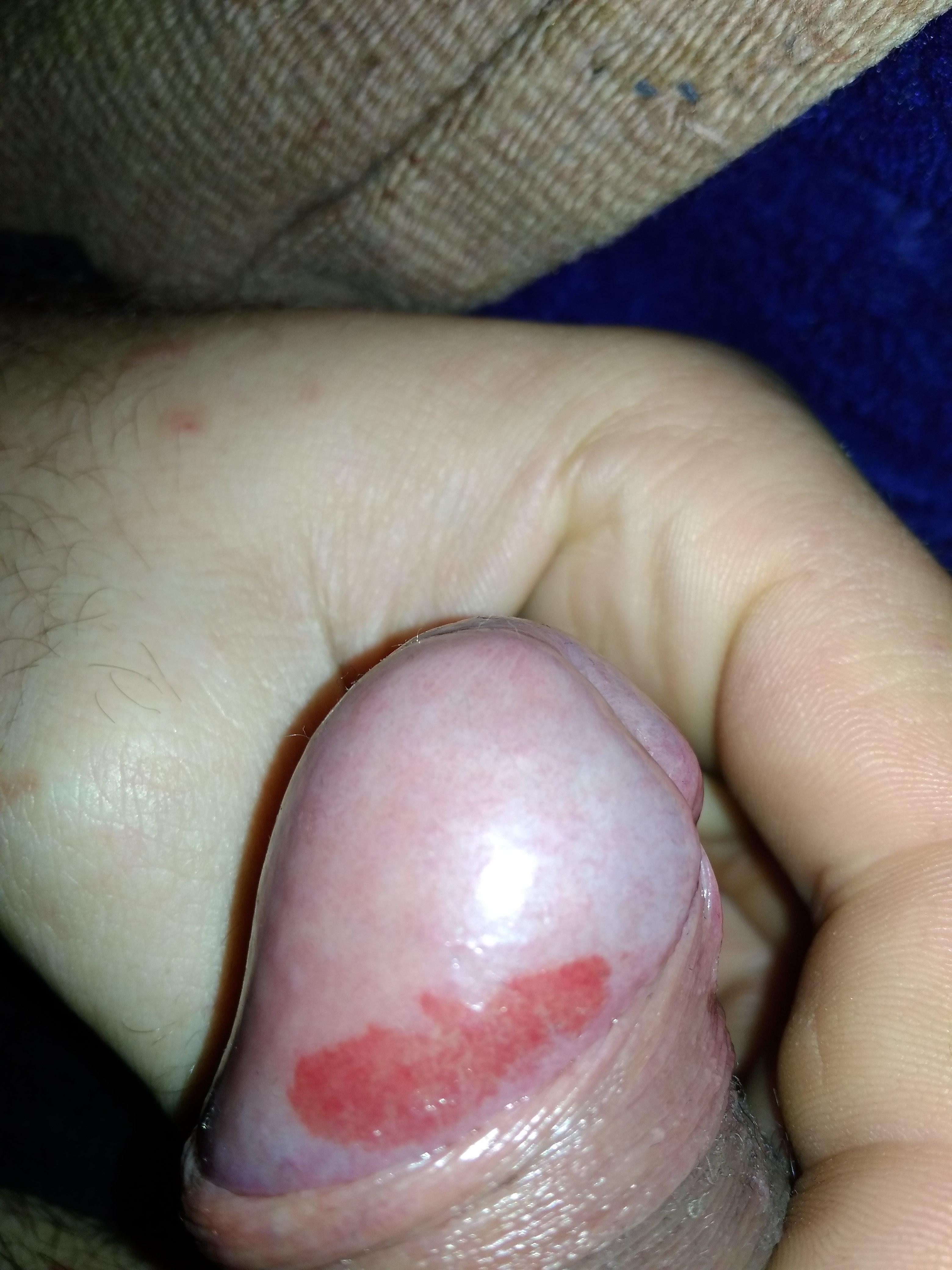 Здравствуйте! По всей видимости, если имел место оральный секс, это может быть прямое следствие этого акта(придавливание. царапина). Надо обрабатывать головку полового члена раствором мирамистина после каждого акта мочеиспускания, соблюдать половой покой на 5-6 дней. Удачи!