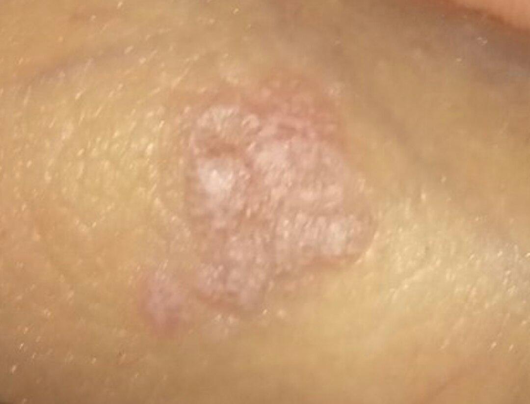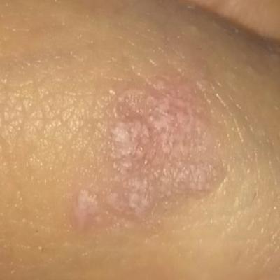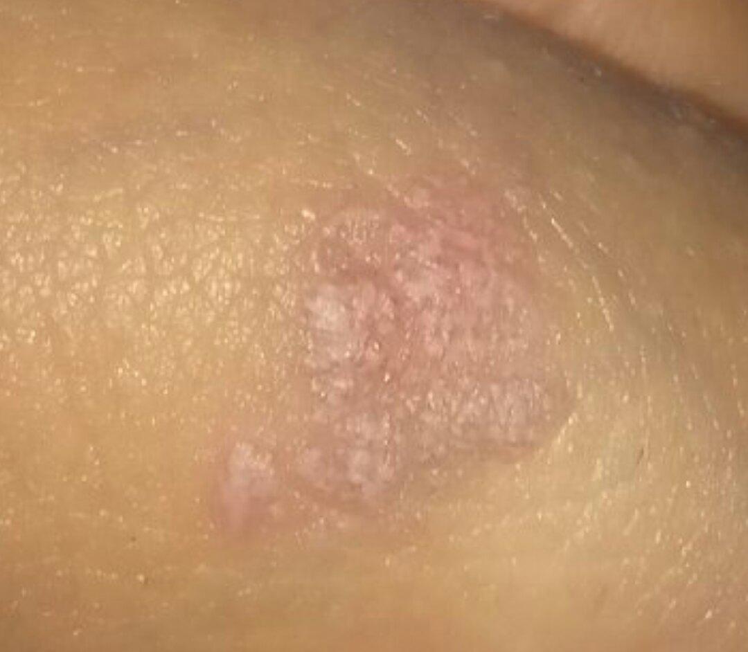 Около 3 месяцев назад появилось образование которое я сочел за герпес, пропив ацикловир образование не ушло. Периодически шелушится, и если присмотреться, то внутри черные точечки. Не вызывает дискомфорта, в при взаимодействии вызывает небольшой зуд. Около 1 см в длину и ширину.