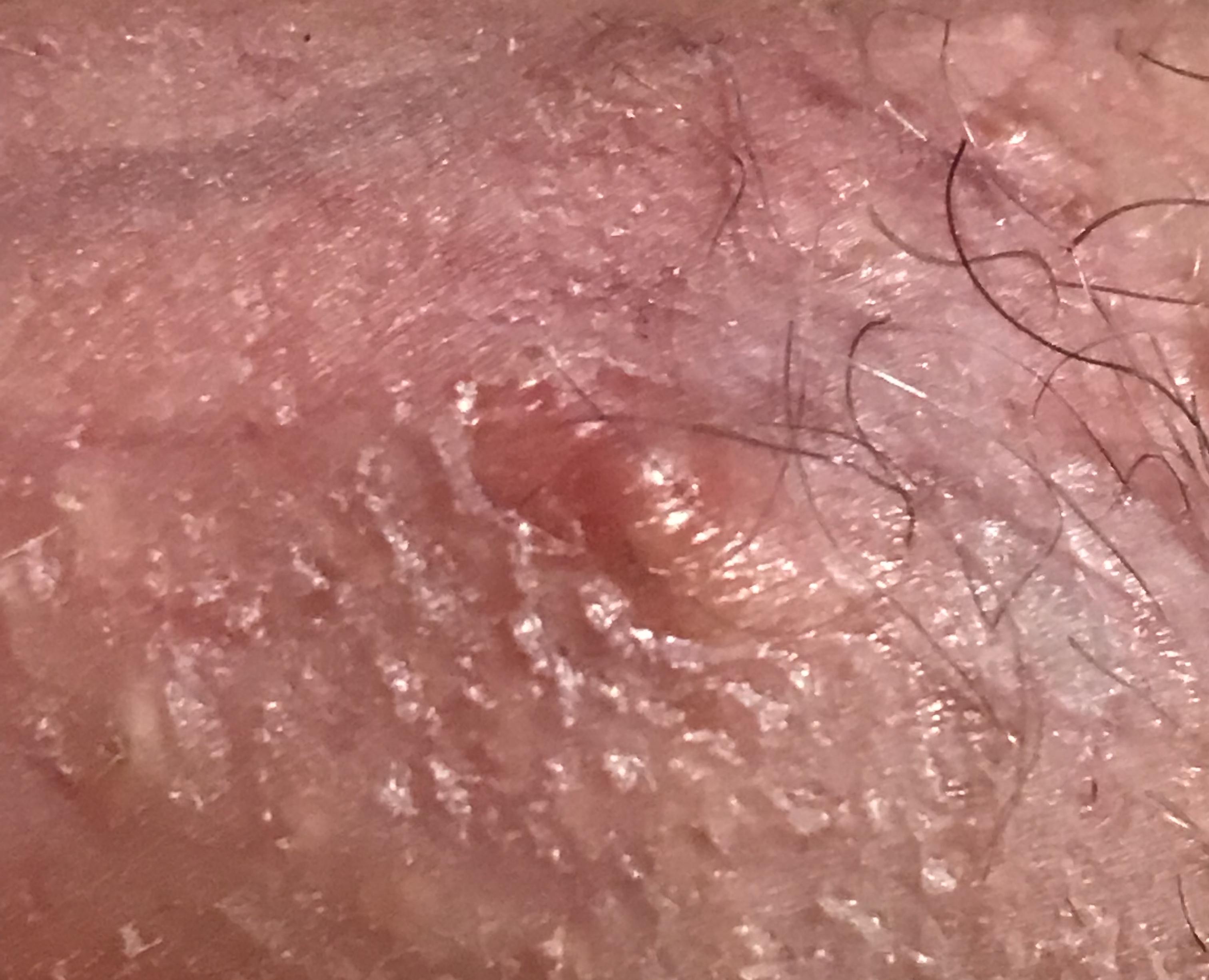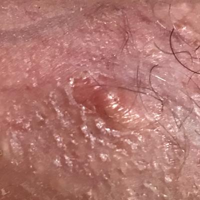 Здравствуйте! Похоже на начинающийся фурункул. Ни в коем случае не давить! Можно местно использовать антибактериальные средства - например, мазь банеоцин. Если будет нарастать покраснение и боль - обязательно обратитесь к урологу или хирургу. Удачи!