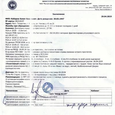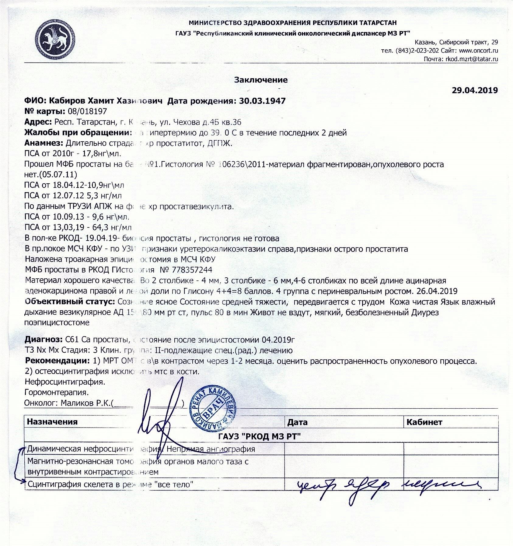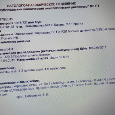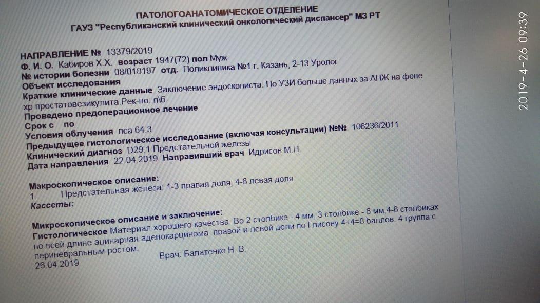 Здравствуйте, папе 72 года. Поставили диагноз: Ацинарная аденокарценома правой и левой доли по Глисону 4+4=8 баллов. 4 группа с периневральным ростом. PSA 64, Есть костные метастазы. Диурез по эпицистоме. Назанчена атиандрогенная терапия + биофосфонаты 1. Золодекс 3,6 мг № 2 1 раз в мес. 2. Флутамид 250 по 1 таб. 3 раза в день 2 мес. Можно-ли сделать операцию, чтобы он смог сам мочиться и есть-ли вообще какое-то лечение, кроме назначенного. Как продлить жизнь? Спасибо