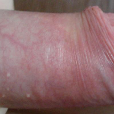 Здравствуйте! Судя по наличию "сжимающего кольца" белесоватого цвета , действительно, имеет место некоторое сужение крайней плоти, и в области уздечки натяжение чуть больше "нормального"(но загиба головки вниз нет). Всё по чуть-чуть , вероятно, создаёт дискомфорт. Обсудите с Вашим урологом целесообразноасть пластики уздечки. Удачи!
