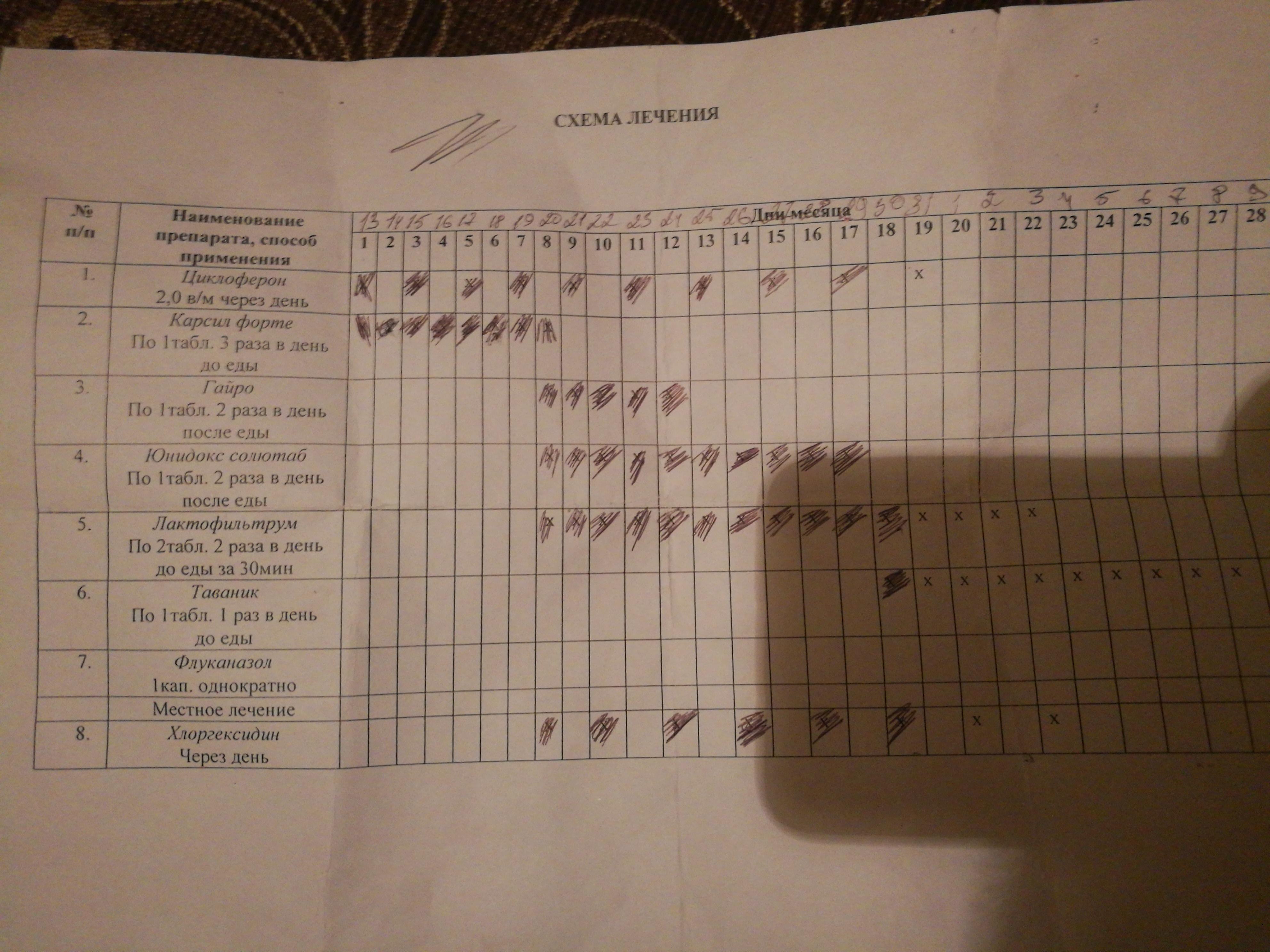 Выделения при лечении.