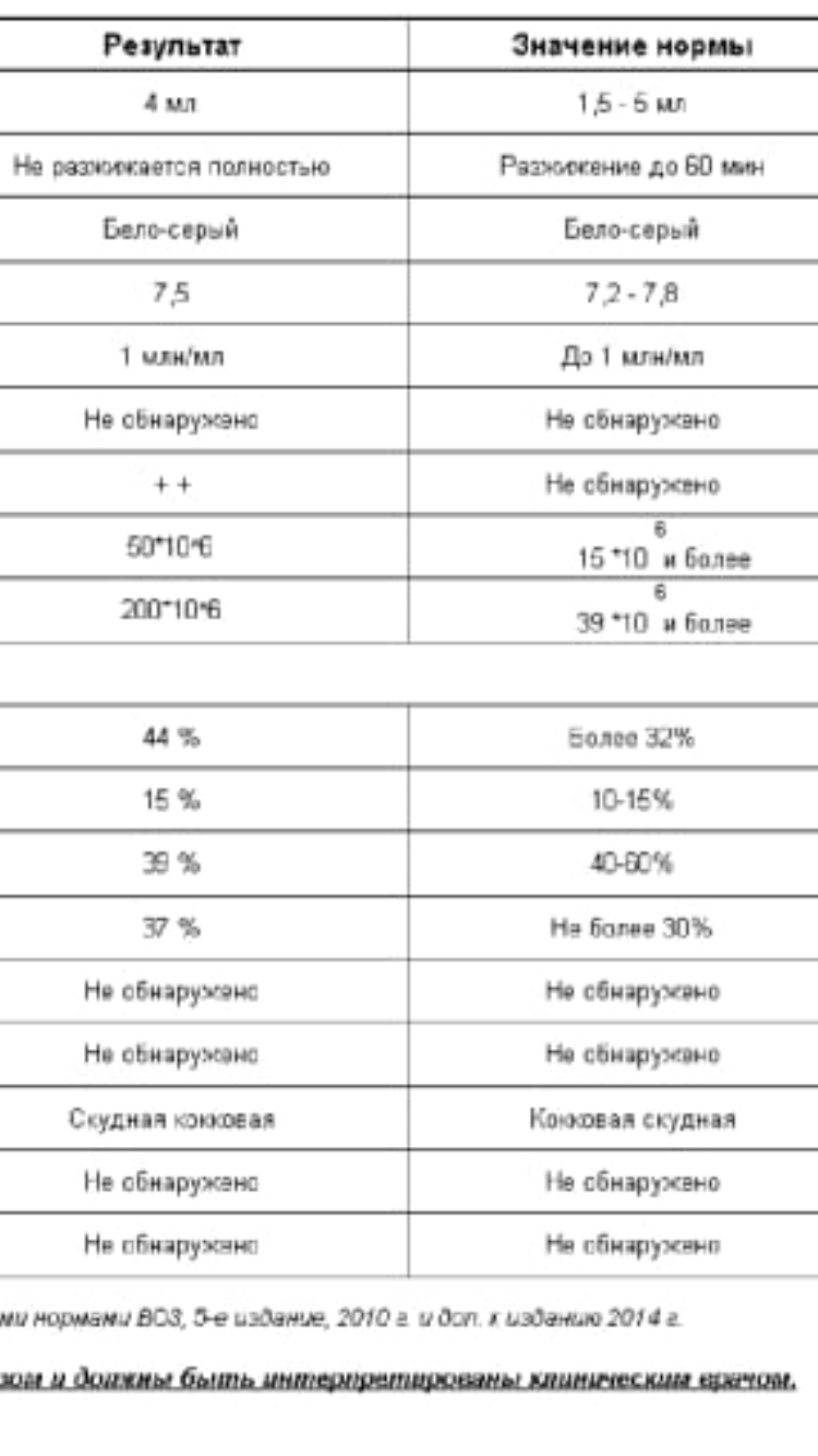 Добрый день.. Приложено фото результатов спермограммы. Судя по таблице идёт отклонение. Основные проблемы. Консистенция: не разжижается полностью. Агглютинация: ++ . Деформированных : 37 %. Основной вопрос. Возможно ли при таких показателях забеременеть? У супруги все в порядке. Что сейчас необходимо предпринять, для улучшения показателей?