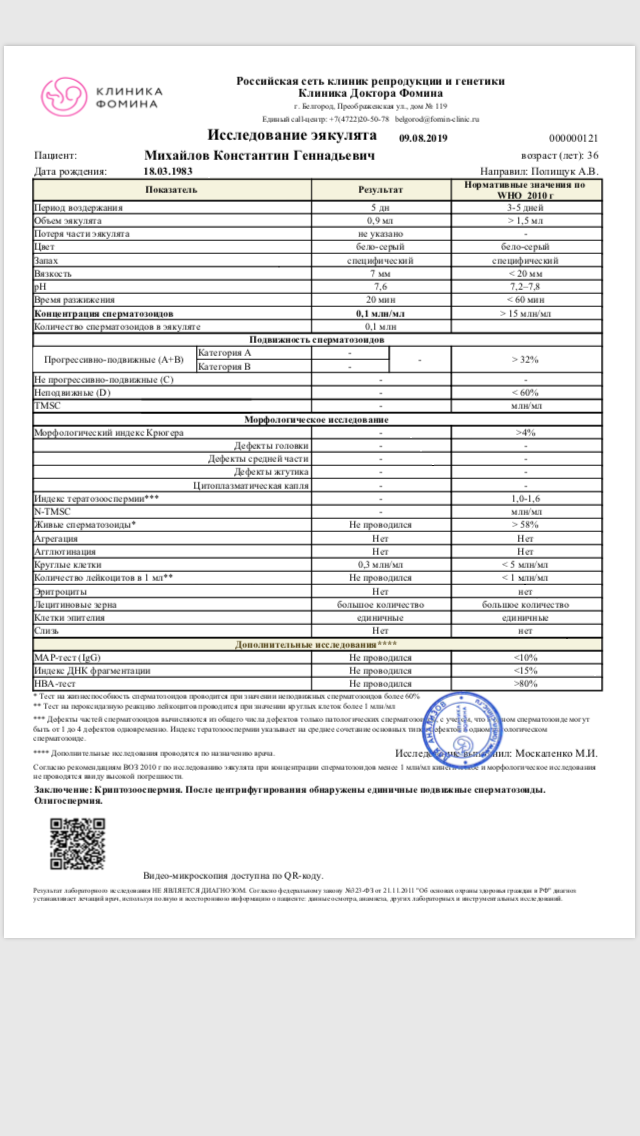 Добрый день! По результатам исследований(крови, УЗИ не доступно чтению) можно предположить, что имеют место гормональные нарушения, по поводу чего нужна консультация эндокринолога, также нужна консультация генетика. Очевидно, что будет идти речь об ЭКО. В целях подготовки к процедурам ЭКО могу рекомендовать препарат Мираксант (http://miraxant.ru/). По результатам клинических исследований он положительно влияет на сперму (а именно на подвижность сперматозоидов, увеличивает их количество) и повышает вероятность зачатия. Принимать его нужно в течение 3- 6 месяцев, и сдавать контрольную спермограмму через 3 месяца и через 6 месяцев от начала приема. Такой промежуток связан с тем, что в течение 3 месяцев происходит полное обновление клеточного состава эякулята (спермы). Во время приема препарата можно продолжать попытки забеременеть. Удачи.