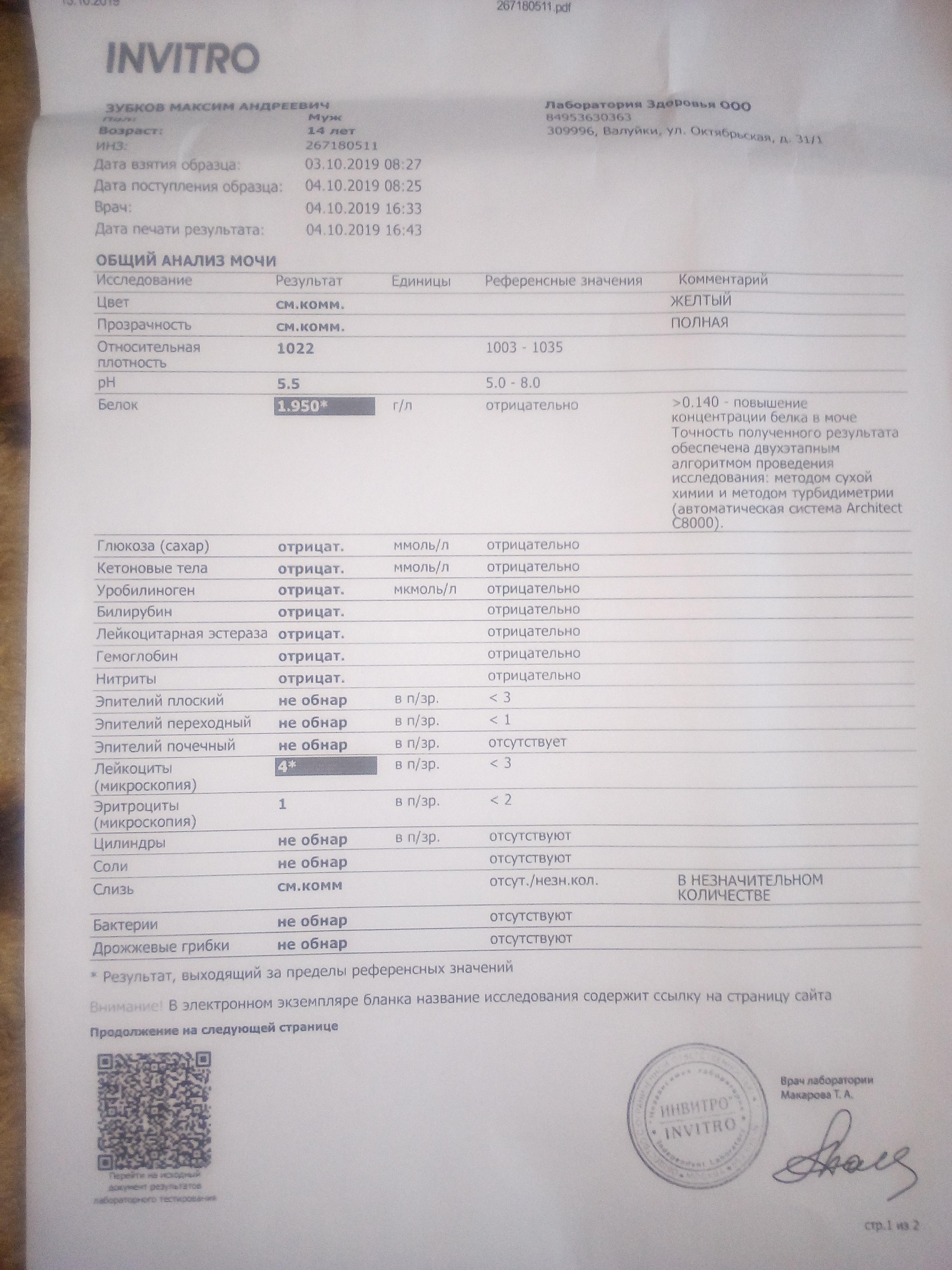 Общий анализ мочи подростка 14 лет показал белок 1.950. После назначения противомикробных препаратов, через неделю был повторно сдан ОАМ белок 1.959. Заключение УЗИ- без патологий. В чем может быть причина таких результатов?