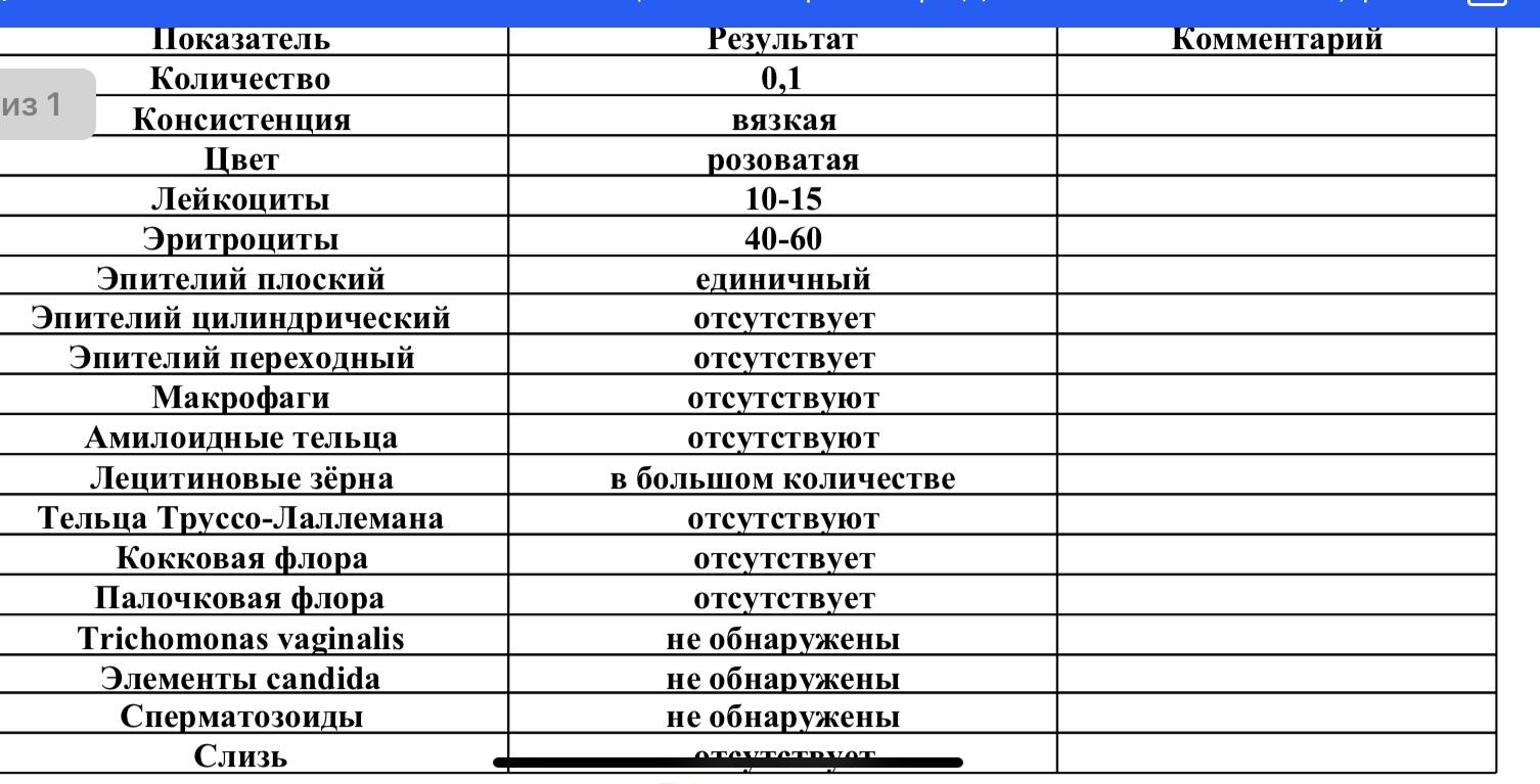 Результат анализа секрета простаты.
