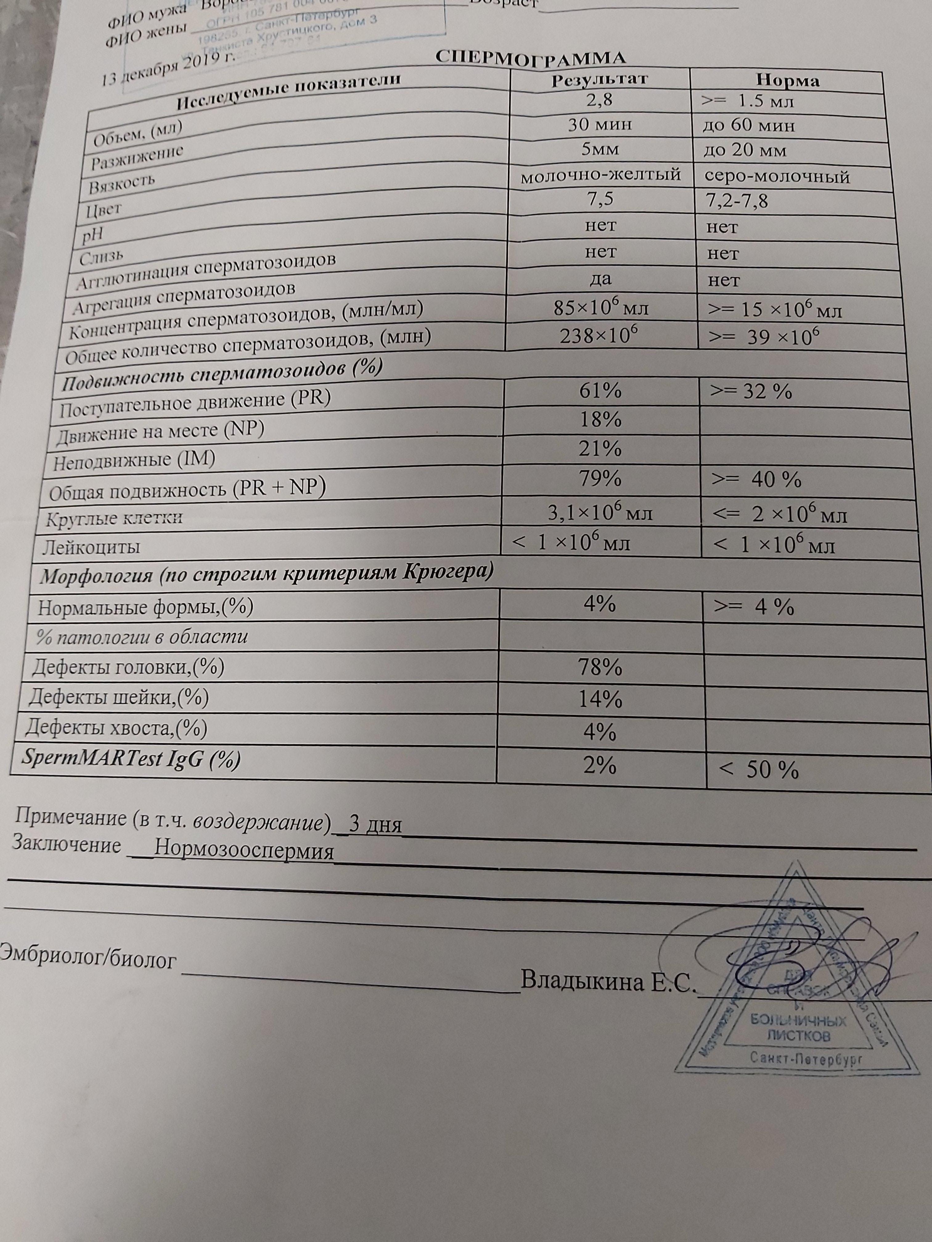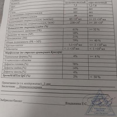Здравствуйте! По практически всем позициям - показатели нормальные. Агрегация бывает от скрытого воспалительного процесса, от оксидативного стресса, а также от ряда других причин. Если беременность не наступает, сделайте бакпосев спермы, анализ спермы на андрофлор, также надо сделать тест на фрагментацию ДНК сперматозоидов(также из эякулята).
