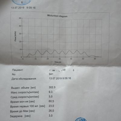 Здравствуйте! Понижена скорость мочеиспускания. Вам надо обратиться к нейроурологу. Такие специалисты бывают в специализированных учреждениях, в кафедральных клиниках. Удачи!