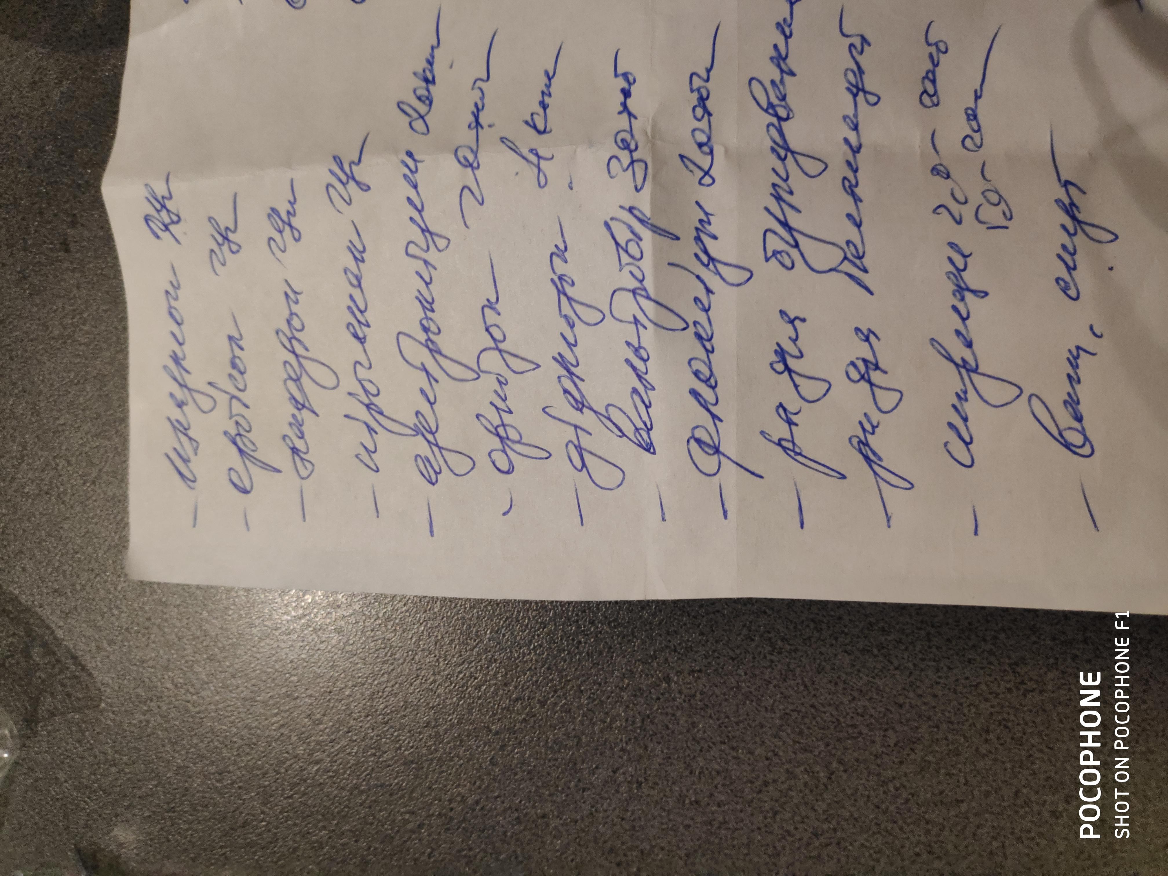 Здравствуйте! К сожалению, не очень читабельный почерк. Вам придётся за разъяснениями вернуться к самому доктору. Удачи!