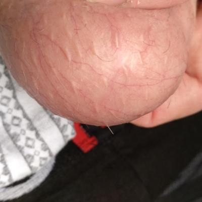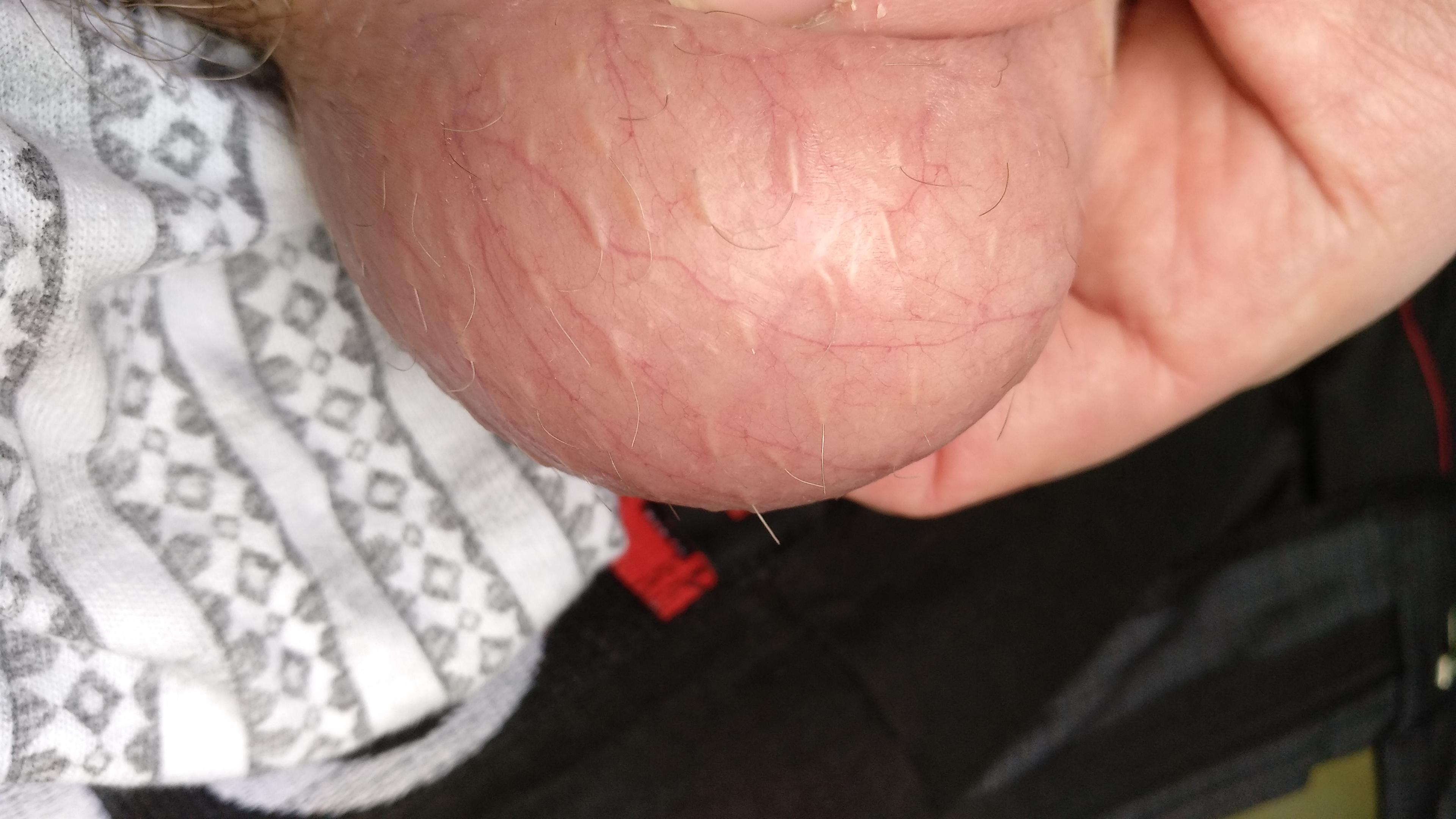 Скажите пожалуйста у меня странные продолговатые образования под кожей мошонки на фото видно, что это такое? Ни чего не беспокоит.