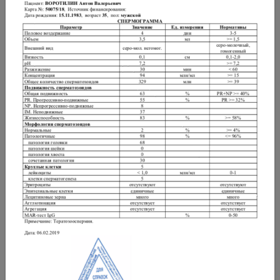 Добрый день! В целом спермограмма неплохая, но зачатие естественным путем может быть затруднено вследствие повышенного количества патологических форм. Могу рекомендовать препарат Мираксант (http://miraxant.ru/). По результатам клинических исследований он положительно влияет на сперму (а именно на подвижность сперматозоидов, увеличивает их количество) и повышает вероятность зачатия. Принимать его нужно в течение 3- 6 месяцев, и сдавать контрольную спермограмму через 3 месяца и через 6 месяцев от начала приема. Такой промежуток связан с тем, что в течение 3 месяцев происходит полное обновление клеточного состава эякулята (спермы). Во время приема препарата можно продолжать попытки забеременеть. Удачи.