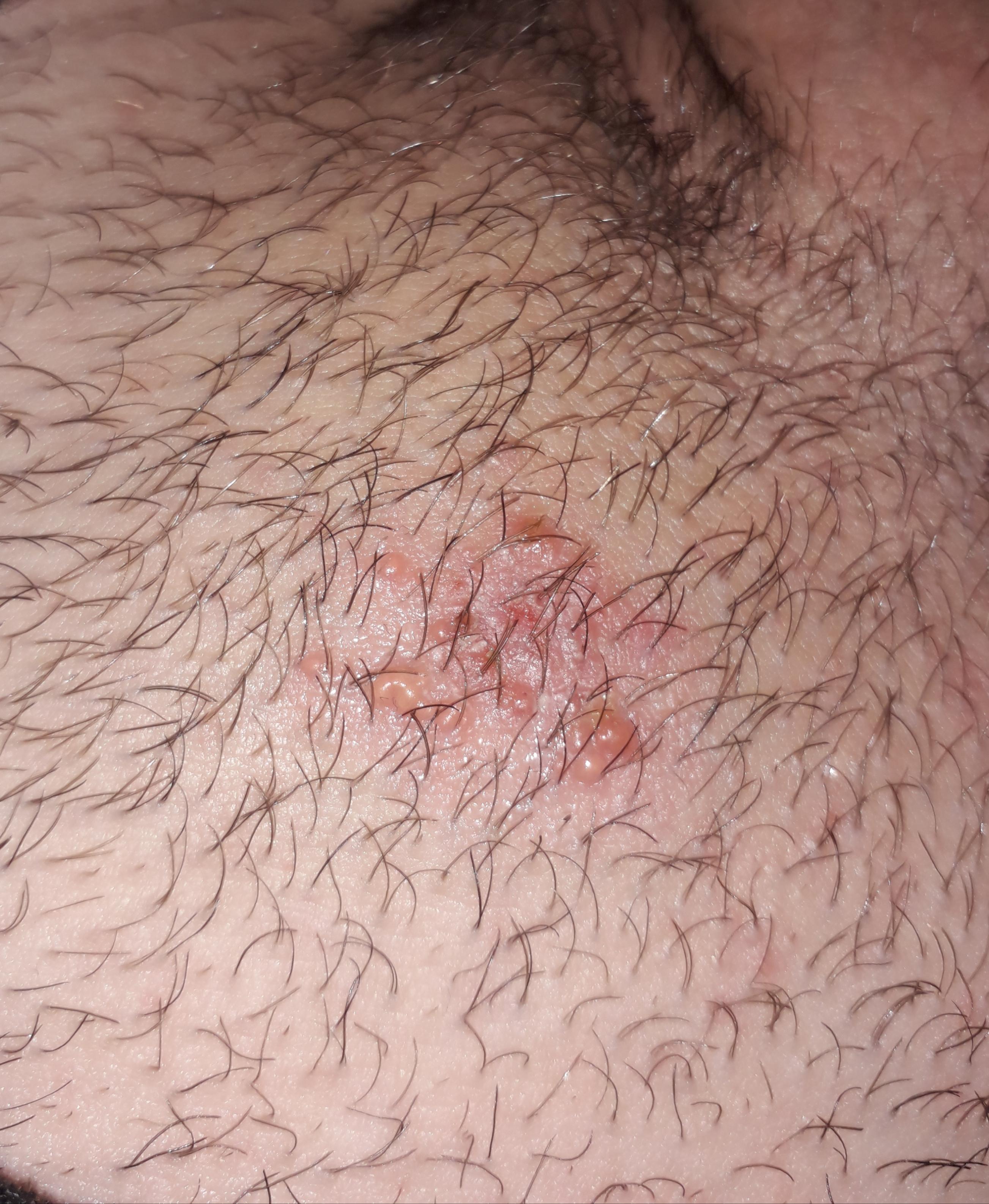 Доброго времени суток. Несколько дней назад на лобке появилась сыпь, похожая на волдыри, наполненные жидкостью. Присутствуют болевые ощущения, жжение, чешется. Первые пузырьки прижигал йодом, начали проходить и после появились новые. Не знаю поможет следующая информация или нет: зимы у нас холодные, ходим в теплой одежде, Работаю на стройке, постоянно потею и переохлаждаюсь. Сначала думал, что это от пота сыпь, но видимо причина другая. Подскажите что это может быть?