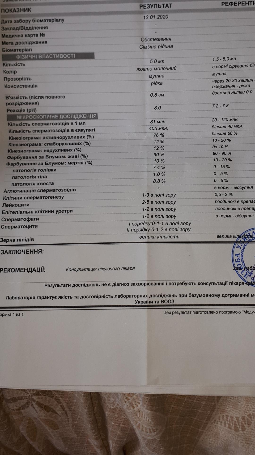 Здравствуйте! Повышено количество неподвижных сперматозоидов. Могу рекомендовать препарат Мираксант (http://miraxant.ru/). По результатам клинических исследований он положительно влияет на сперму (а именно на подвижность сперматозоидов, увеличивает их количество) и повышает вероятность зачатия. Принимать его нужно в течение 3- 6 месяцев, и сдавать контрольную спермограмму через 3 месяца и через 6 месяцев от начала приема. Такой промежуток связан с тем, что в течение 3 месяцев происходит полное обновление клеточного состава эякулята (спермы). Во время приема препарата можно продолжать попытки забеременеть. Удачи.