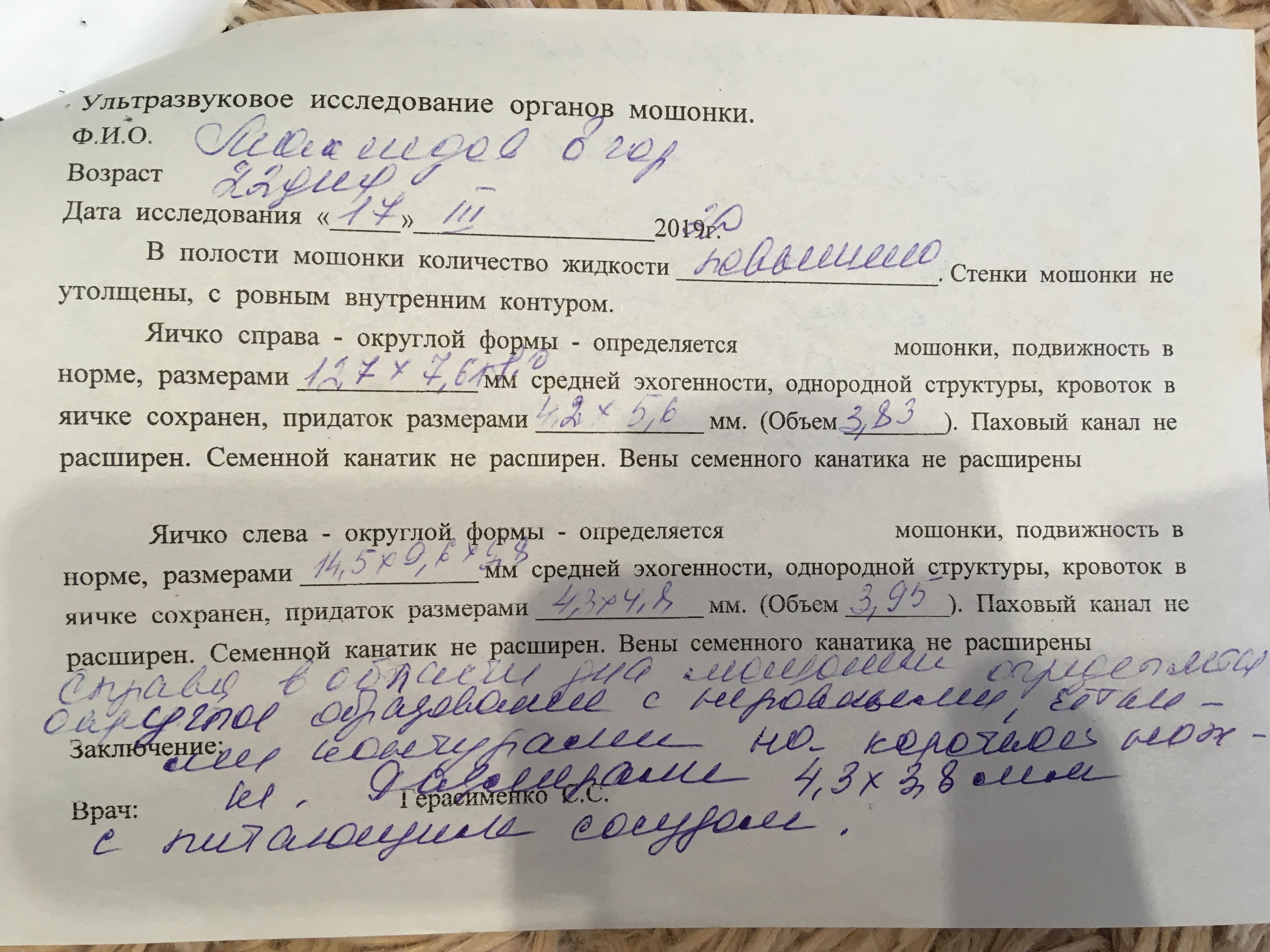 Прилагаю расшифровки узи