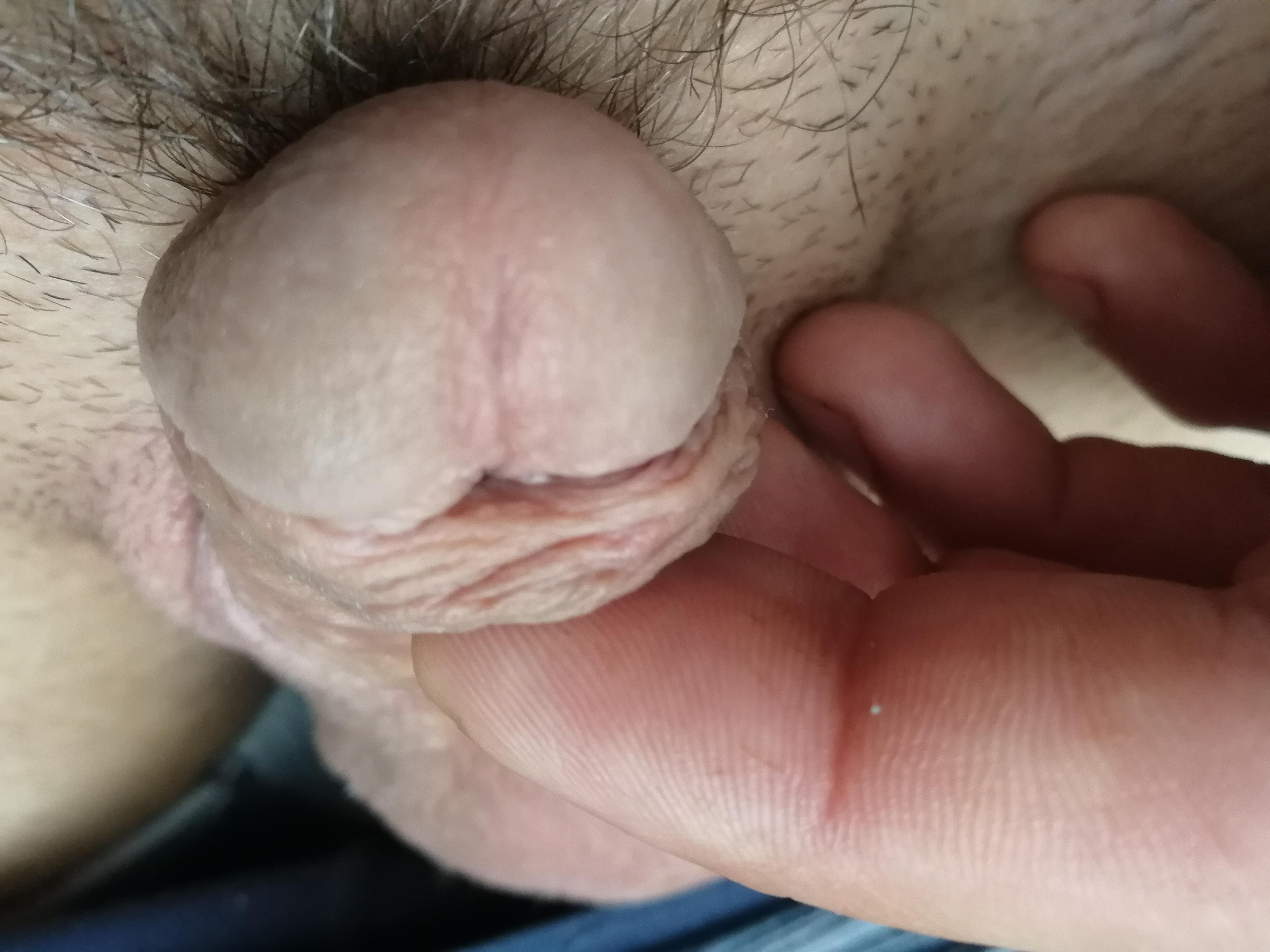 Здравствуйте! На представленных фото можно заподозрить гипоспадию(аномалию развития уретры). Что, конечно, не исключает вероятности инфекционного урогенитального процесса. Сдайте эякулят на бакпосев и на андрофлор. Сделайте УЗИ почек, мочевого пузыря, простаты с определением объёма простаты и остаточной мочи. С результатами обязательно обратитесь к урологу очно. Удачи!