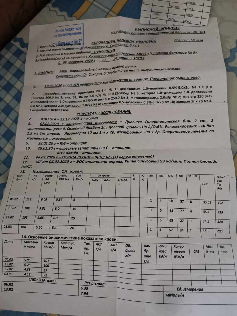 10.02.2020 моей маме 1961 год рождения сделали операцию на правой почке.