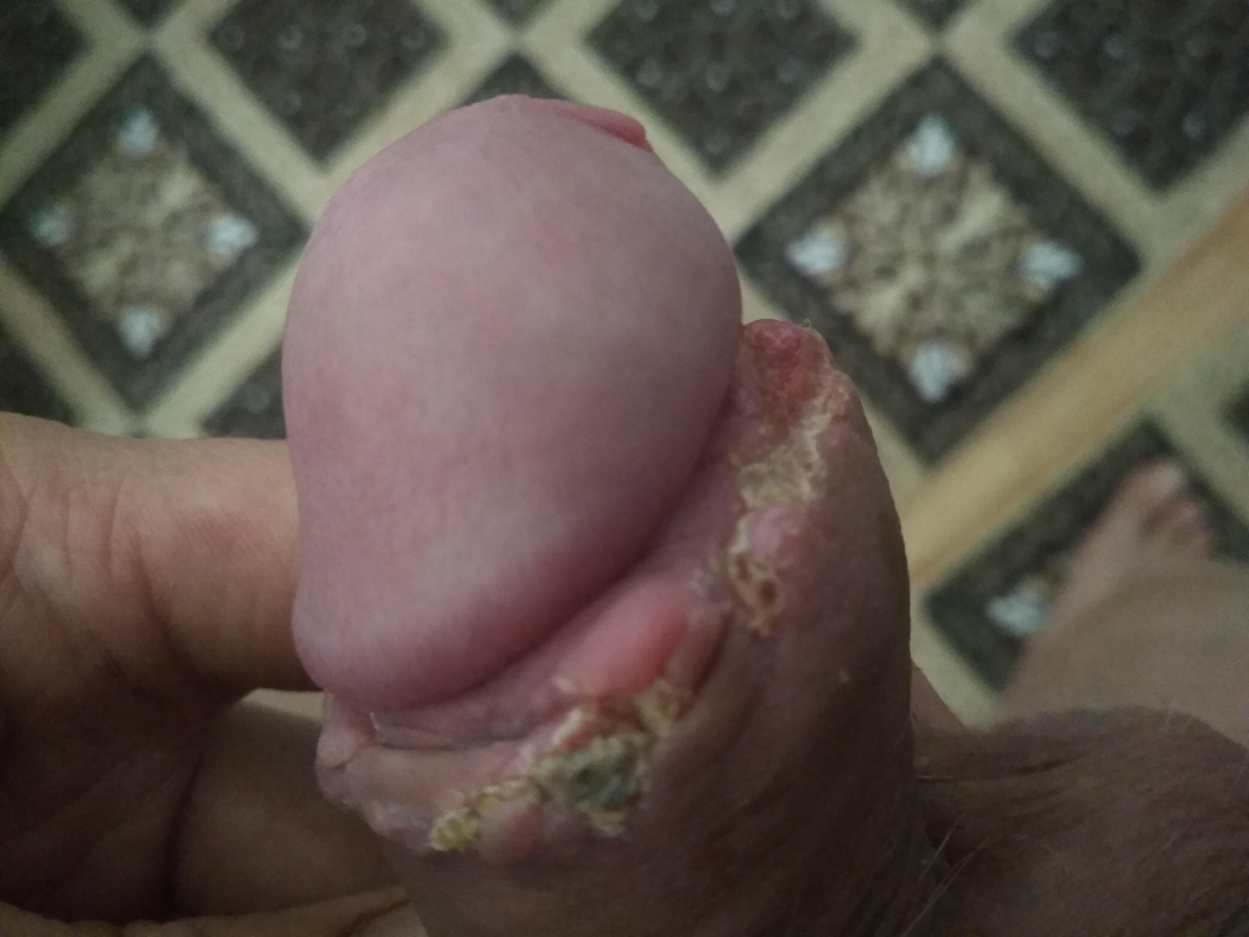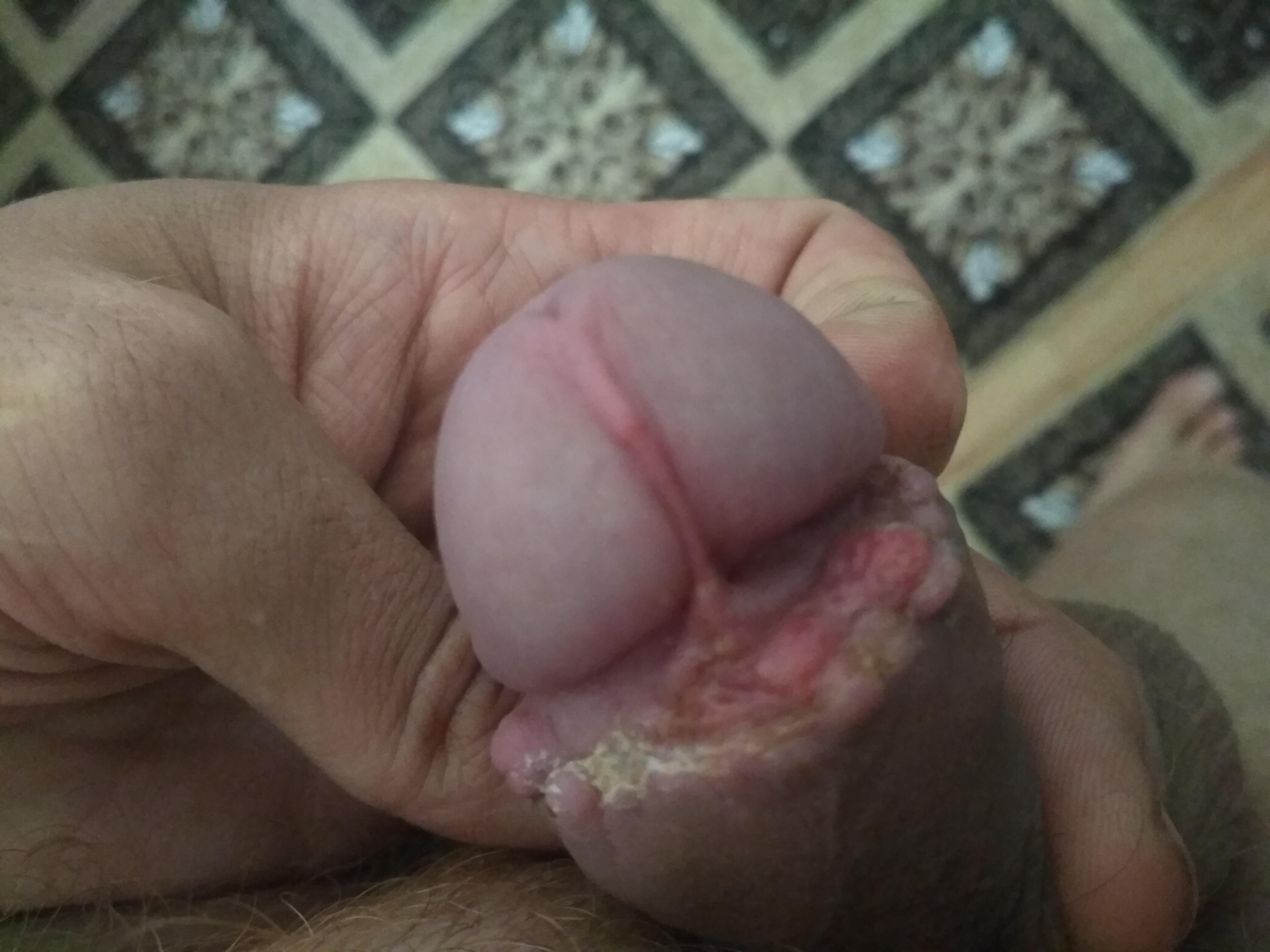 Здравствуйте. Мне 23. Делал 3 недели назад обрезание, уже всё должно было зажить, но когда ещё было 2 недели последние швы отошли, и когда швы отходили кожа от головки отошла, и расползлась вокруг, то что это испортило эстетичный вид пениса, ладно, но он не заживает, под головкой есть раны, которые не как не заживают, и кровоточат, но не много, иногда бывает желтое покрытие. Остальные места вокруг пениса затвердели. Мажу мазью левомеколь. Ранее я писал об этом, вы попросили фото, показываю. Помогите пожалуйста.
