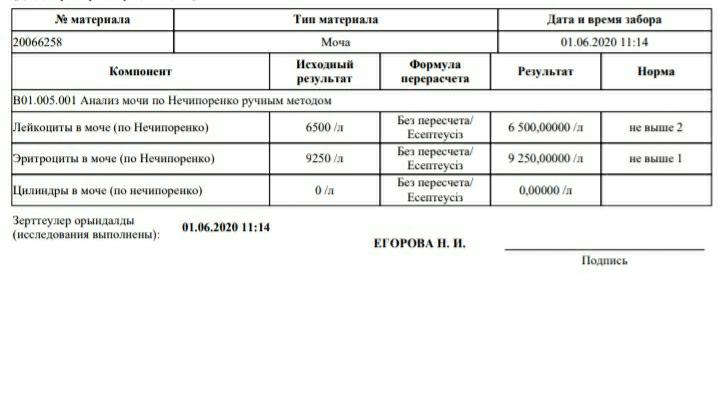 Результаты мочи по нечипаренко