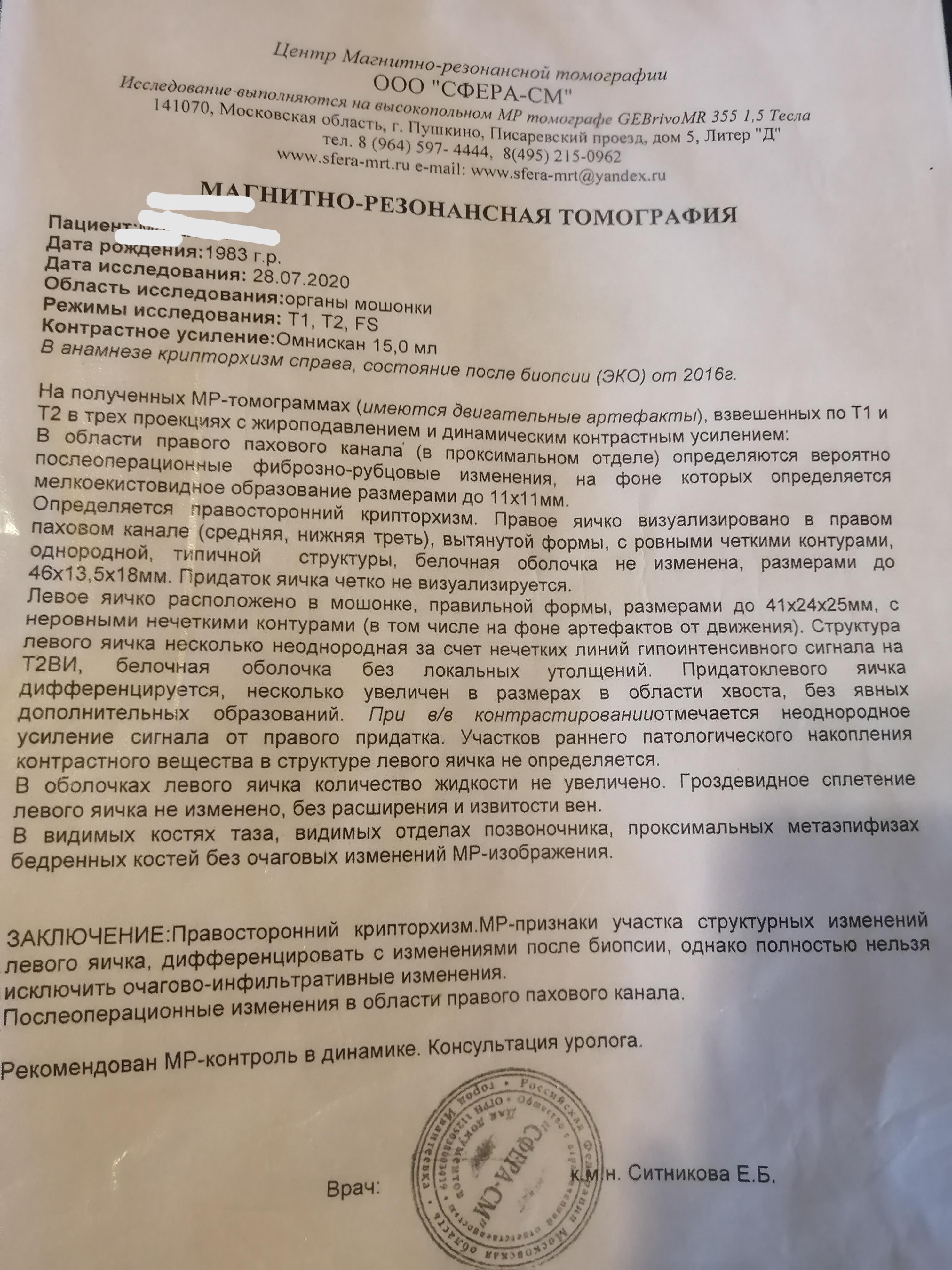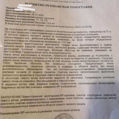 Добрый день, у мужа крипторхизм, с 2017 г азооспермия, делали операцию микро тесе для извлечения сперматозоидов для ЭКО, в 2018 г заболело яичко, пенис почти перестал стоять, сделали УЗИ, есть образование, сделали мрт, сказали наблюдать пока, зпп нет, сейчас пропала сперма, плюс ко всему частые мочеиспускания, пока принемаем тадафил для эрекции, помогает, но не прям хорошо, так же у мужа сидячая работа, что нам посоветуете, что и как лечить? Заранее спасибо
