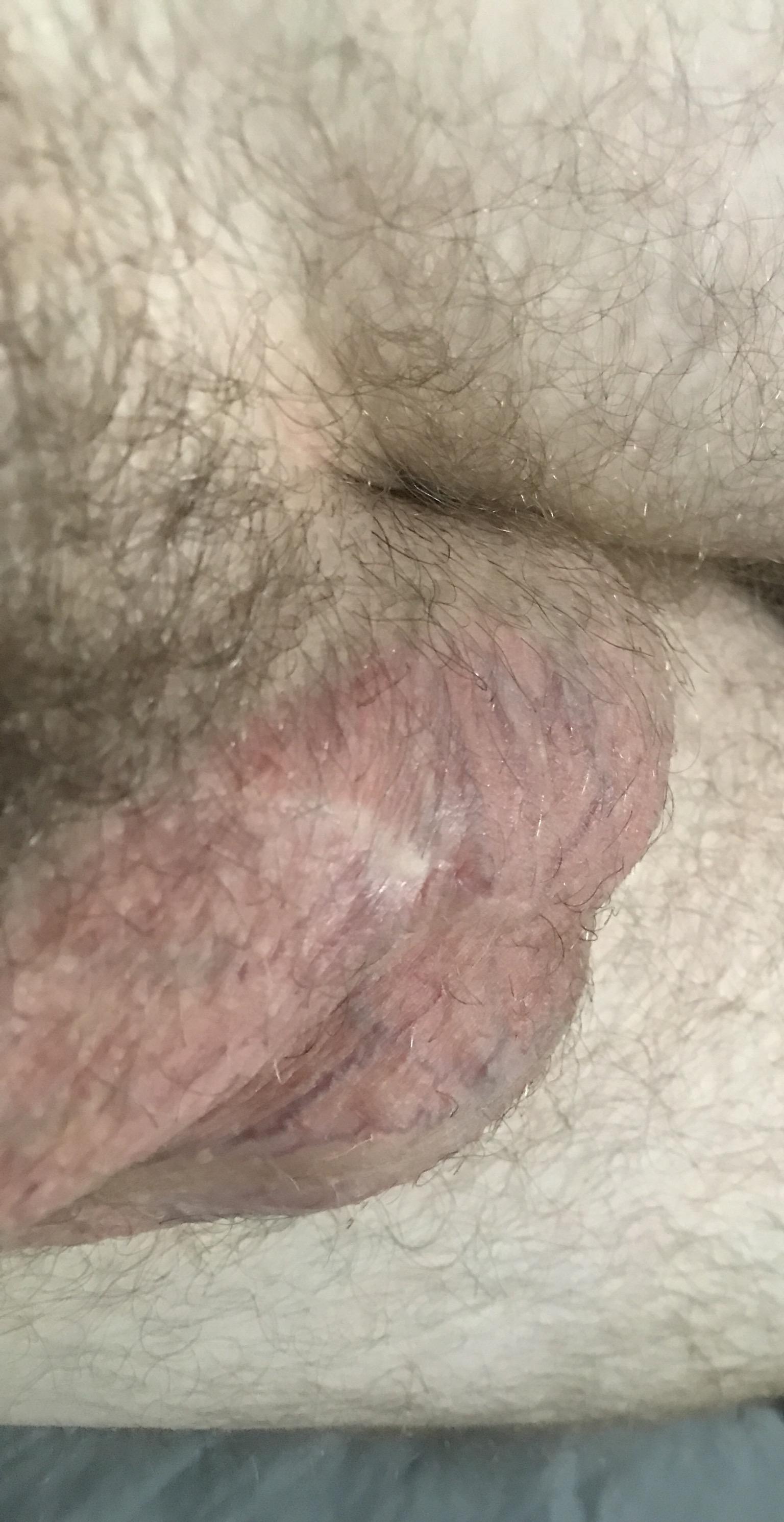 Здравствуйте. Примерно 9 месяцев назад обнаружил пятно на мошонке, с четкими контурами и достаточно большого размера. Сходил на приём к урологу, он сказал, что пятна не видит. А вот мой дерматолог отметил, что пятно есть. И обратил внимание, что увеличены Вены. Это видео на фото. Нет никаких других симптомов, температура в норме, болей нет, крови нет. Пятно иногда становиться более бледное, а иногда наоборот. Особенно если долго сидеть. Где-то одновременно с появлением пятна была боль в области ануса, но по ощущениям болела кость, как бы это смешно и странно не звучало. Не знаю к какому специалисту обратиться.