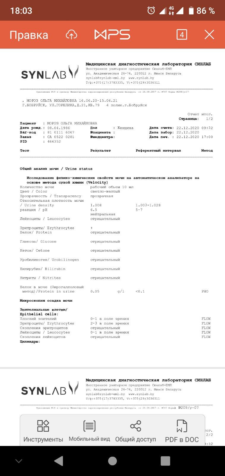 Здравствуйте, пострянно эритроциты по Нечипоренко в моче( Узи почек и мочевого пузыря делала, норма, оак норма, а вот мрча прикрепляю файл(( Уролог говорит идет песок...но 2 мес и без опрелеления оксалатов? Такде на крнчике иногда