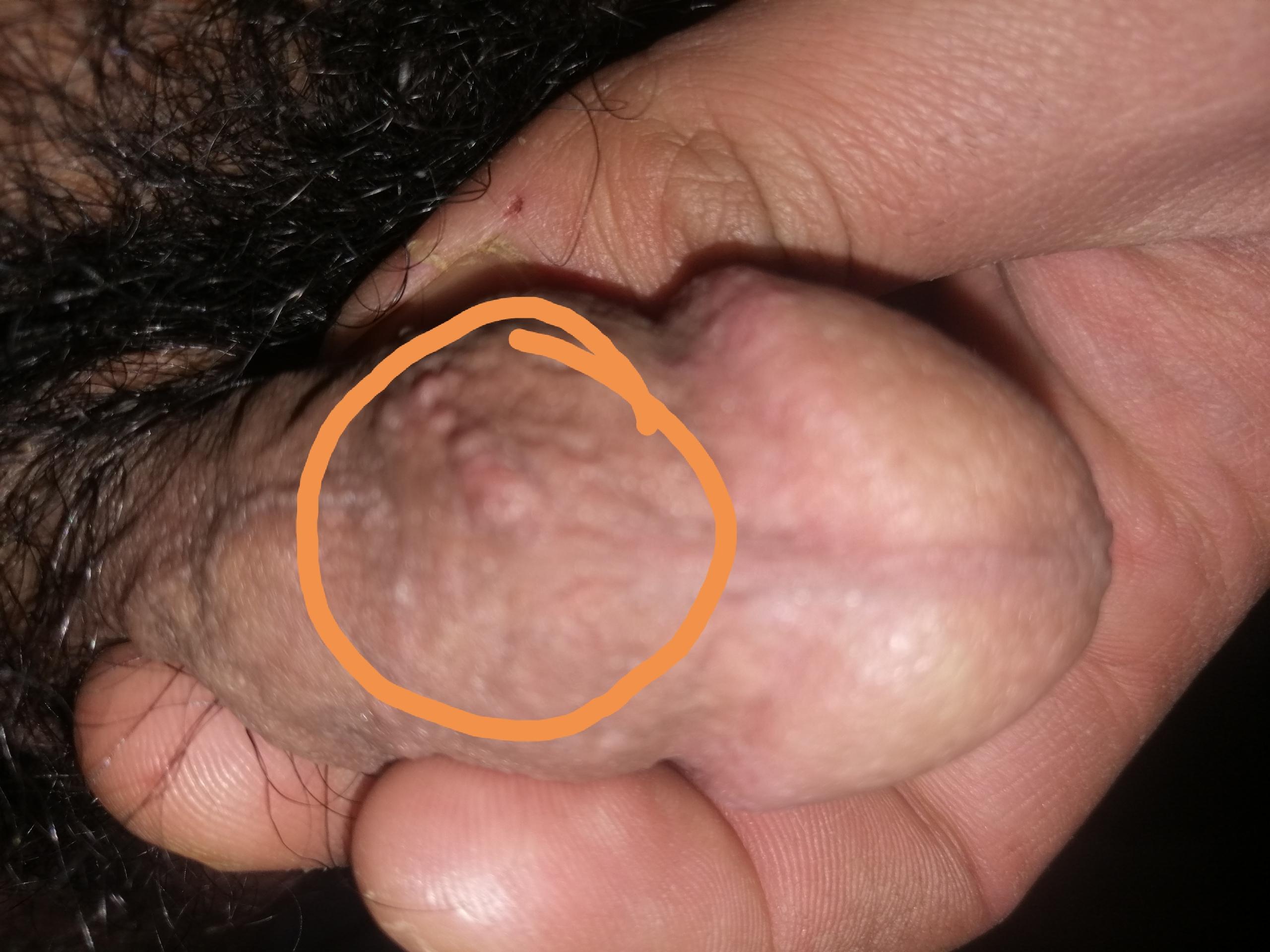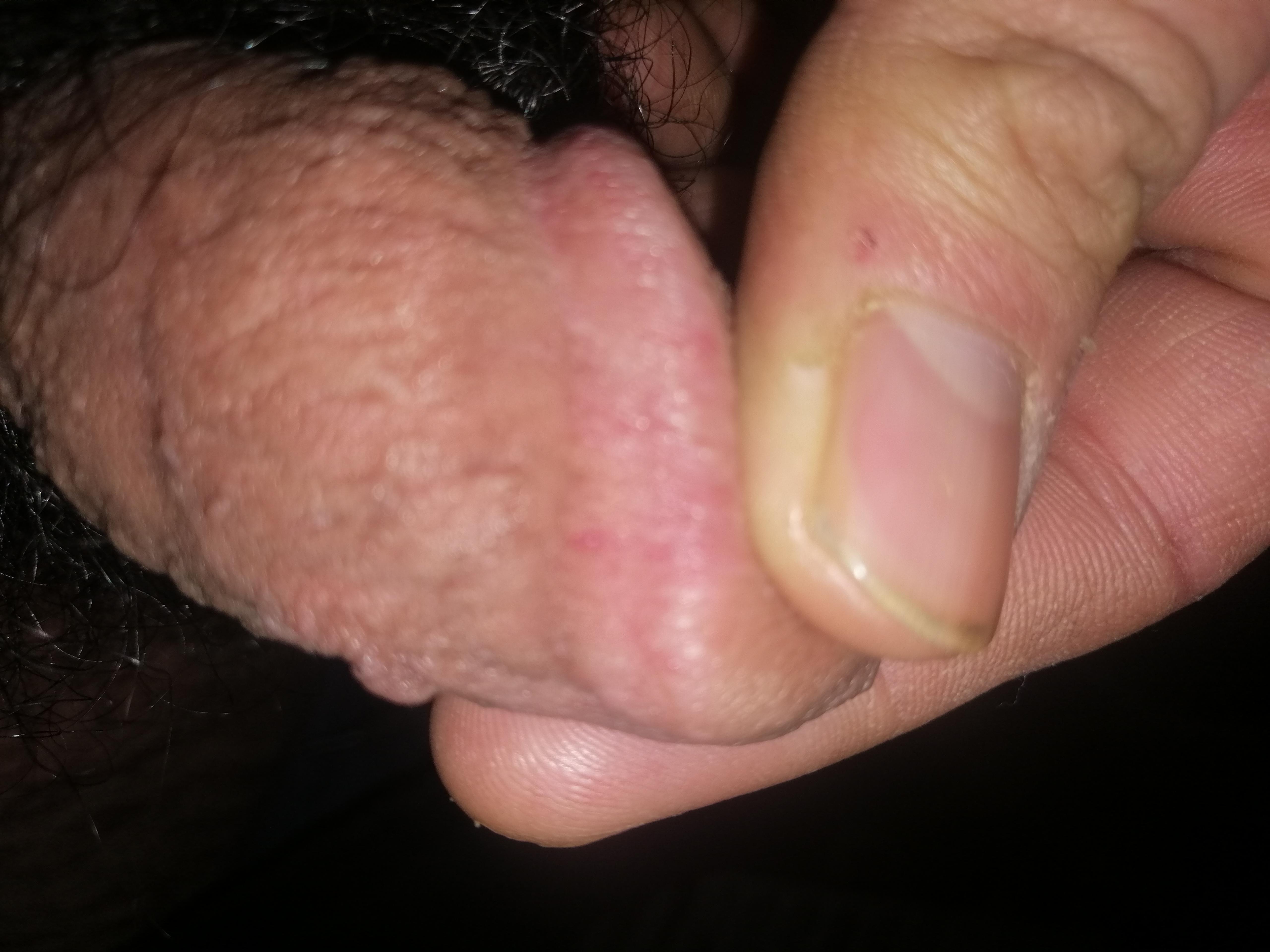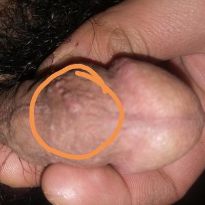 Здравствуйте! Фото не очень четкое. На первом фото визуализируются сальные железы. На втором фото - возможно, потёртость после мастурбации. Необходимо показаться урологу очно. Удачи!