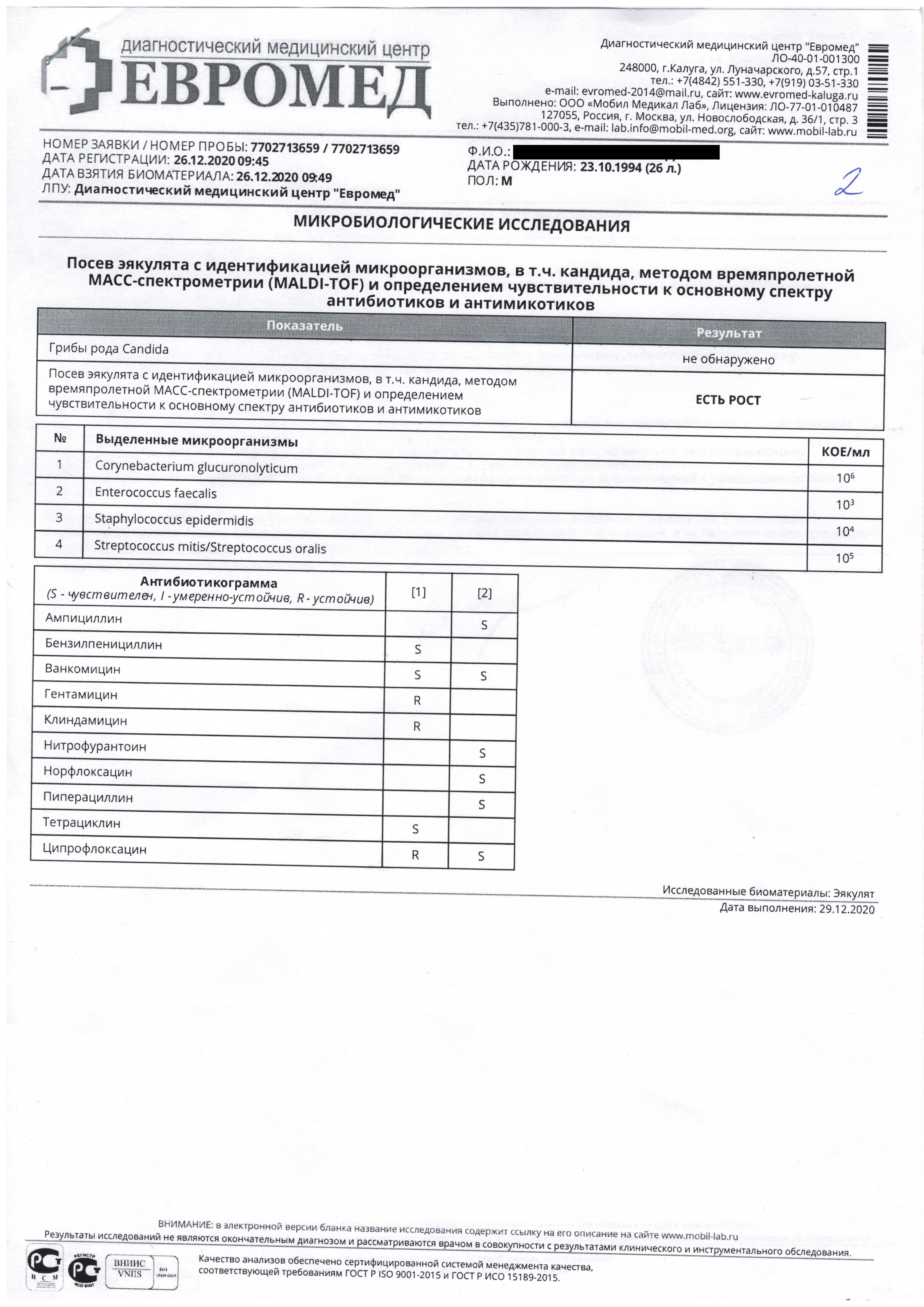 Здравствуйте! В первую очередь надо пролечиться по поводу кандидоза в соответствии с чувствительностью. Затем через 3 недели сдать эякулят на бакпосев. Нормализация микрофлоры может снизить рост и болезнетворных микрорганизмов. Обратитесь для назначения лечения к дерматовенерологу в данном случае. Удачи!