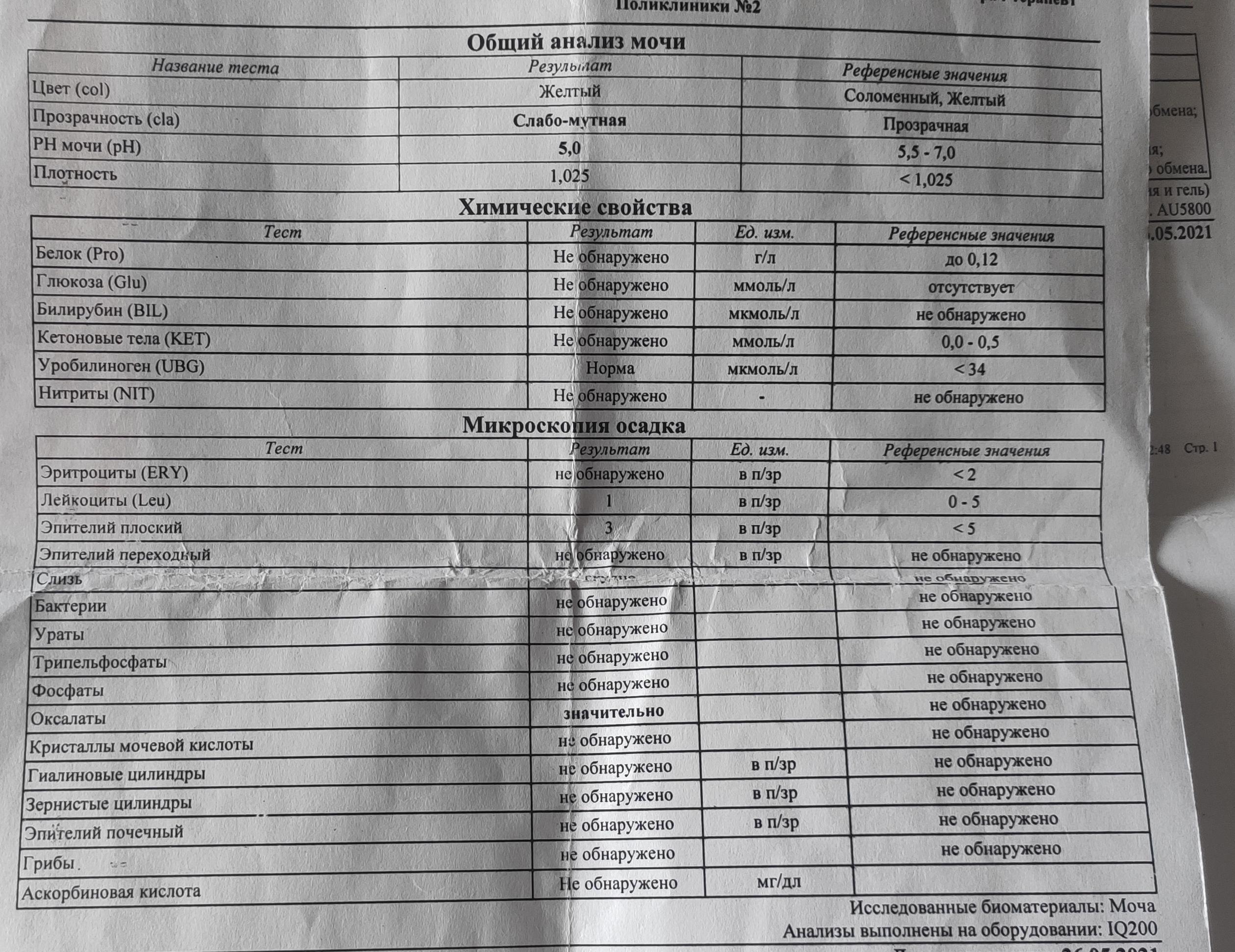 Также надо отметить наличие оксалатов в общем анализе мочи. Для уменьшения образования оксалатов можно рекомендовать курсовой приём комплекса Оксалит.