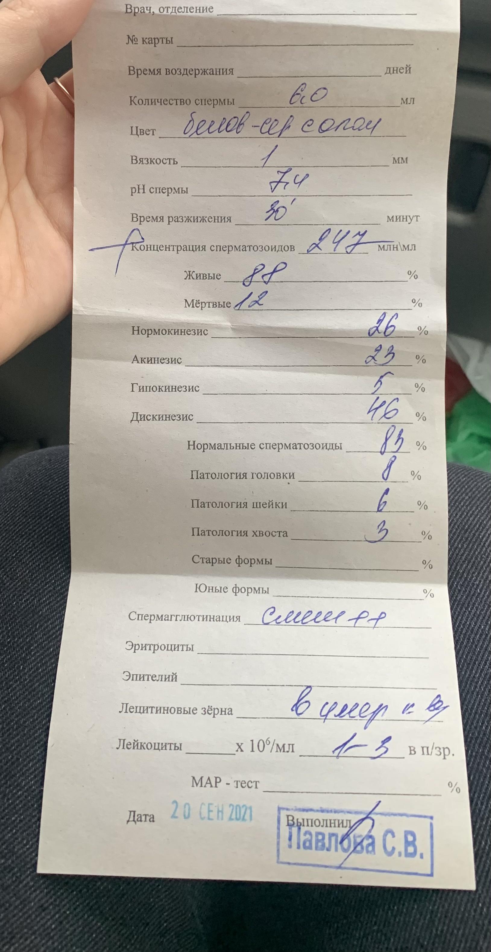Здравствуйте! Снижена подвижность сперматозоидов. С целью улучшения качества спермы можно рекомендовать курсовой приём комплекса Мираксант, который повышает вероятность естественного зачатия, может назначаться при подготовке к ЭКО/ИКСИ. При этом Вы можете продолжать попытки зачатия. Удачи!