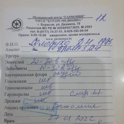 Здравствуйте,Помогите расшифровать мужской мазок.И если возможно поставить диагноз Эпителий 20-30 Лейкоциты 10-30 Бактериальная флора-скудно Гонококки-нет Трихомонады-нет Гарднерелы-нет Дрожжи-нет Слизь ++