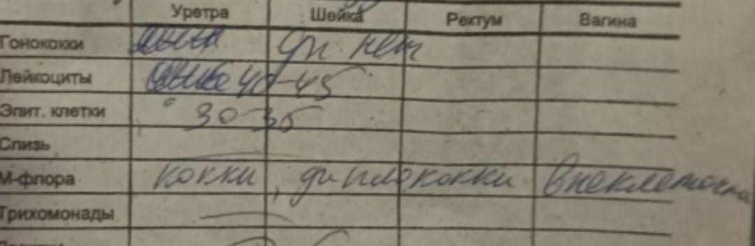 Результаты уретроскопии