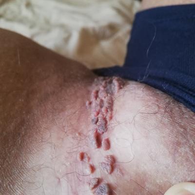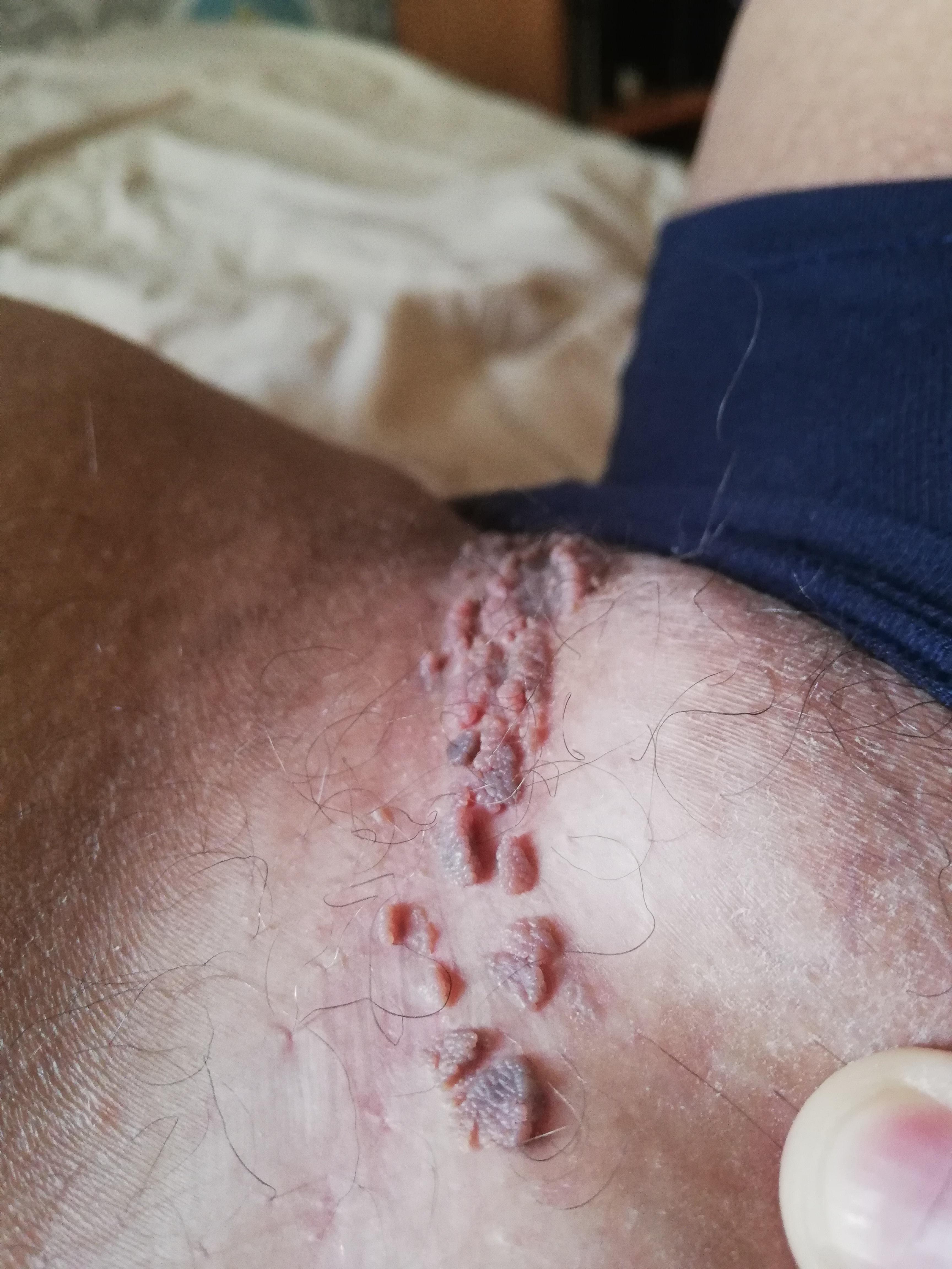 Добрый день, более года назад после того как натер промежность между пахом и ногой появились данные высыпания, что это может быть? Также подобные точки были какое-то время у основания головки члена, но они прошли самостоятельно. Высыпания не болезненные, весьма грубые, как наросты. Просьба помочь